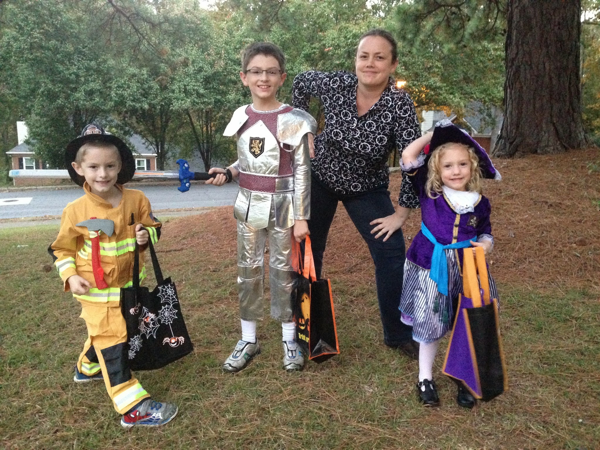 Here we are on our way out for Trick-or-treating in our neighborhood. It was pretty cold and sprinkled on and off that evening.