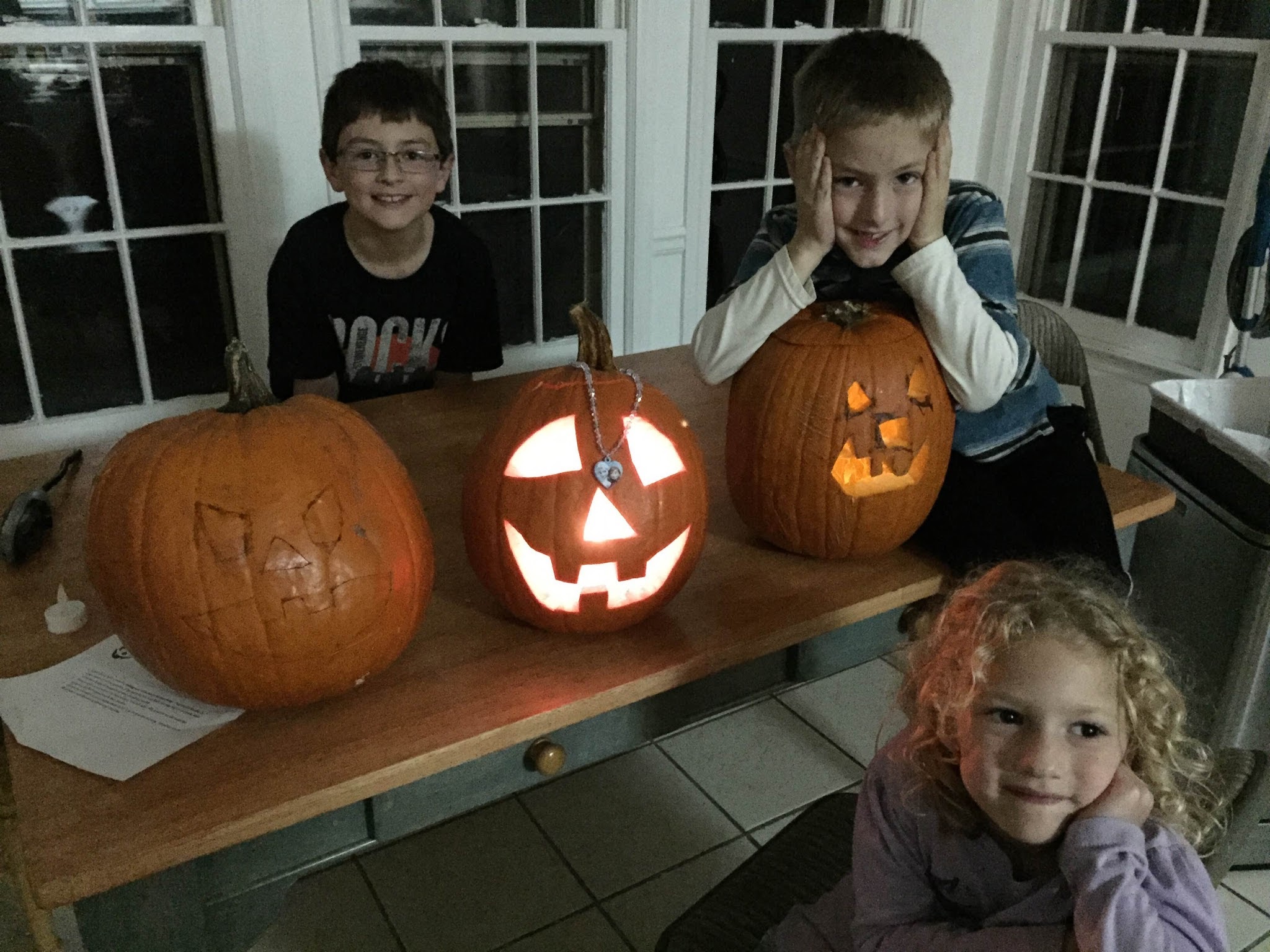 We carved pumpkins the Monday before Halloween, but they got moldy and collapsed 4 days later!