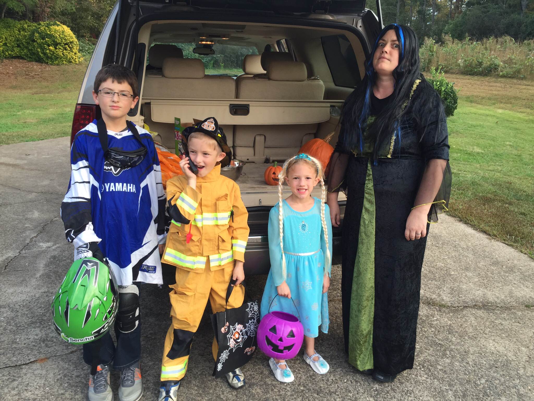 Getting ready to go to the trunk or treat at the church building
