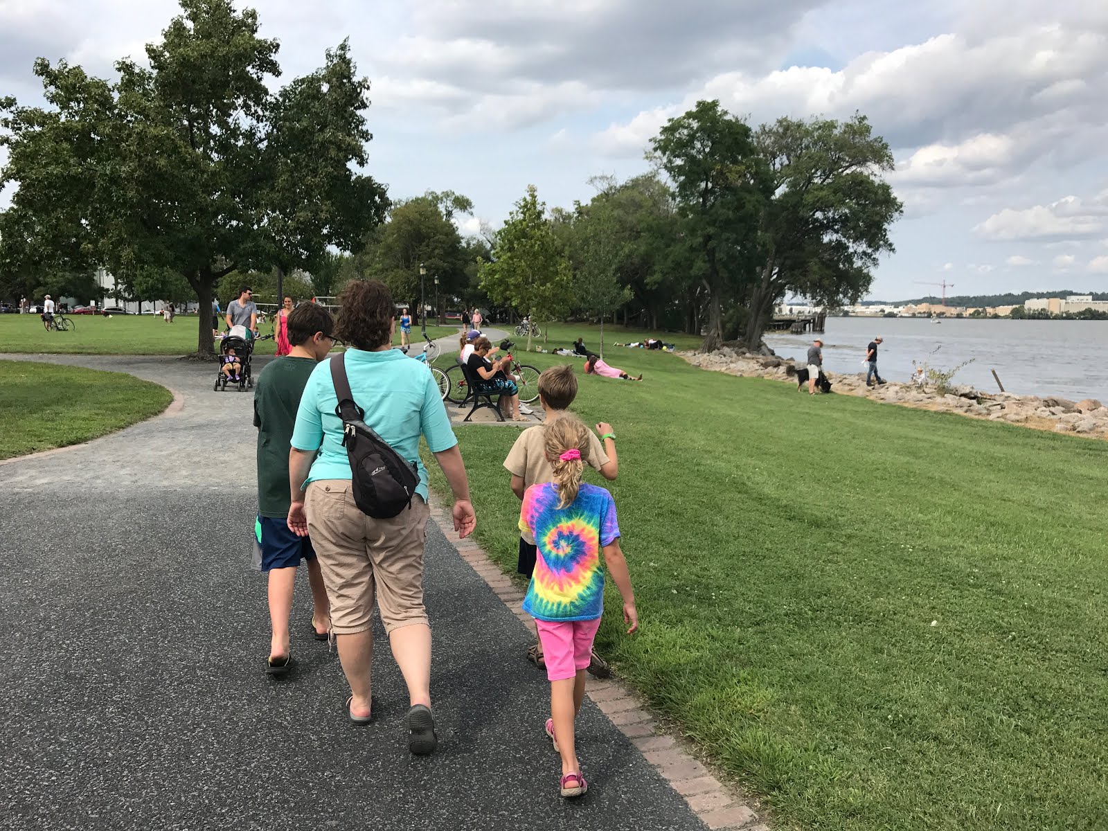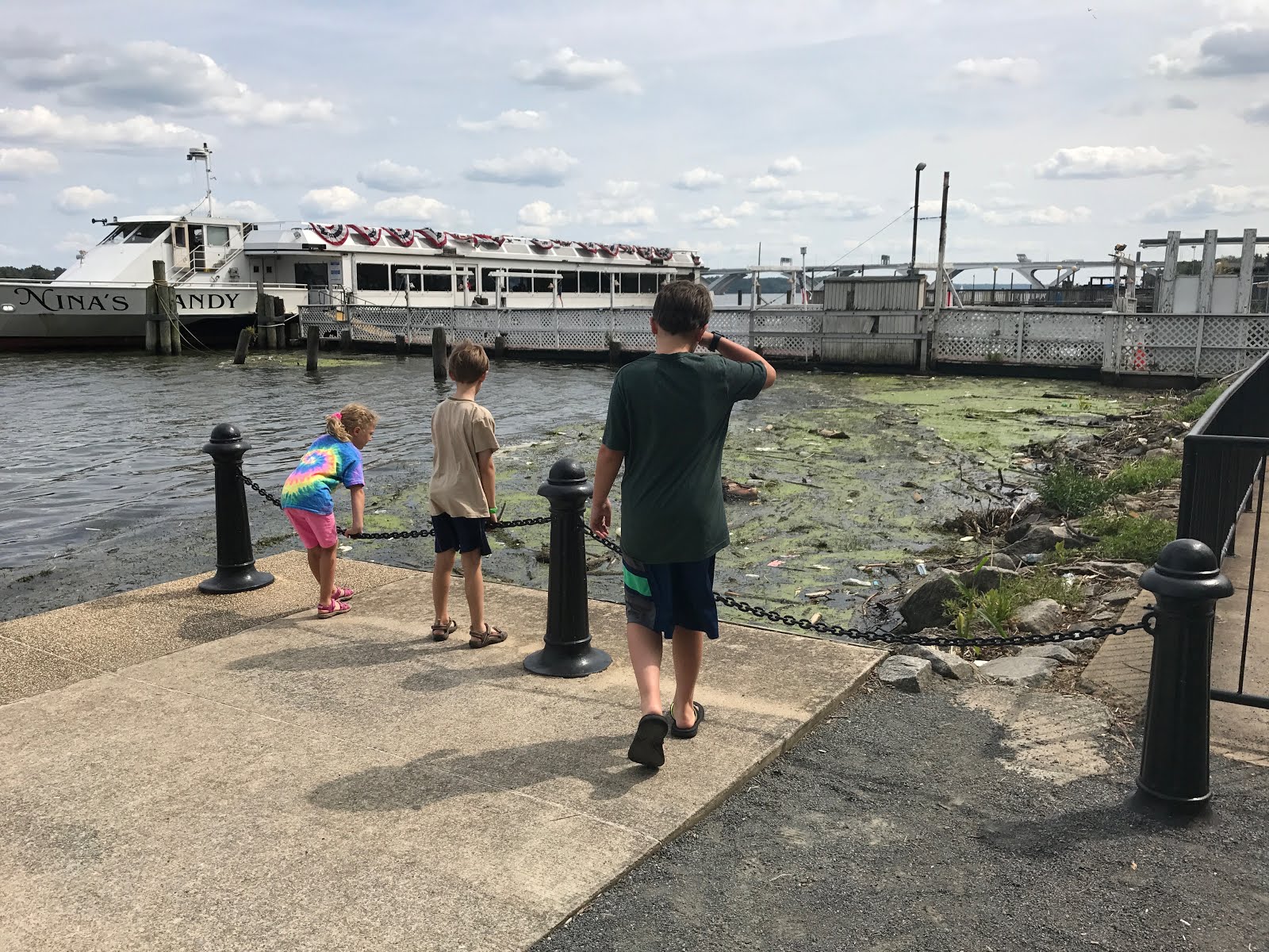 We wanted to go for a walk this weekend, so we drove five miles to the Historic Alexandria Waterfront. Generally, it was a beautiful and relaxing walk. The restaurants and shops looked delicious and inviting. While standing by the pier, we saw a group of about 20 huge catfish and several large carp all converge and start open their mouths of the water. Each fish was about 2.5 to 3 feet long and they were all really, really fat.