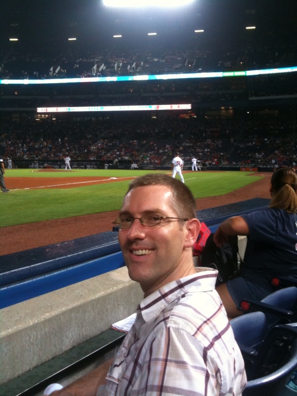 Wow! How often do you get a first row seat at a major league baseball game?!? I've been in Atlanta, GA for a few days for a trade show for a side business that I've been working on. Last night a company treated me and one of my business partners to a steak at Ruth's Chris Steakhouse. Then tonight my business parter bought us tickets to the Braves game. Even though the Marlins destroyed the Braves, it was a fun game.