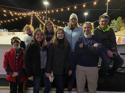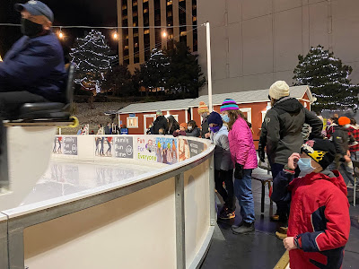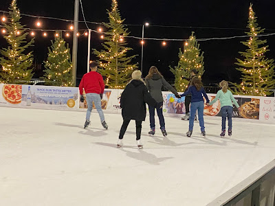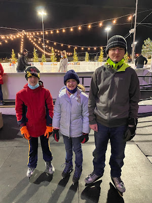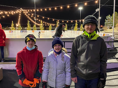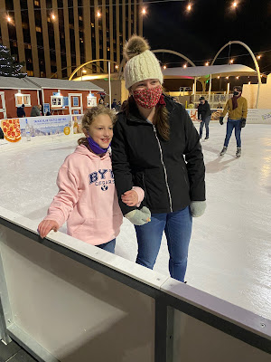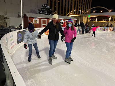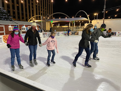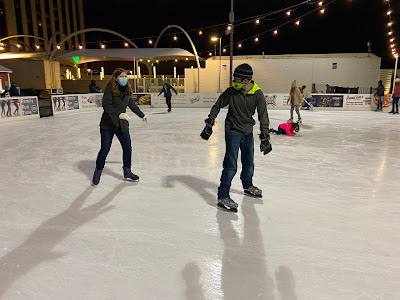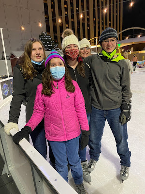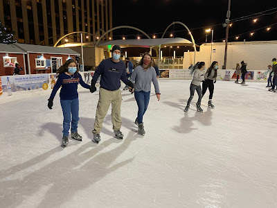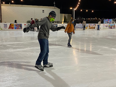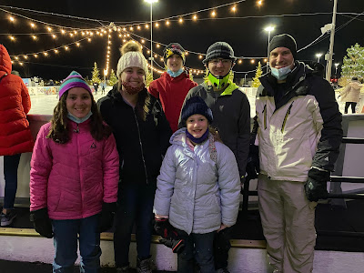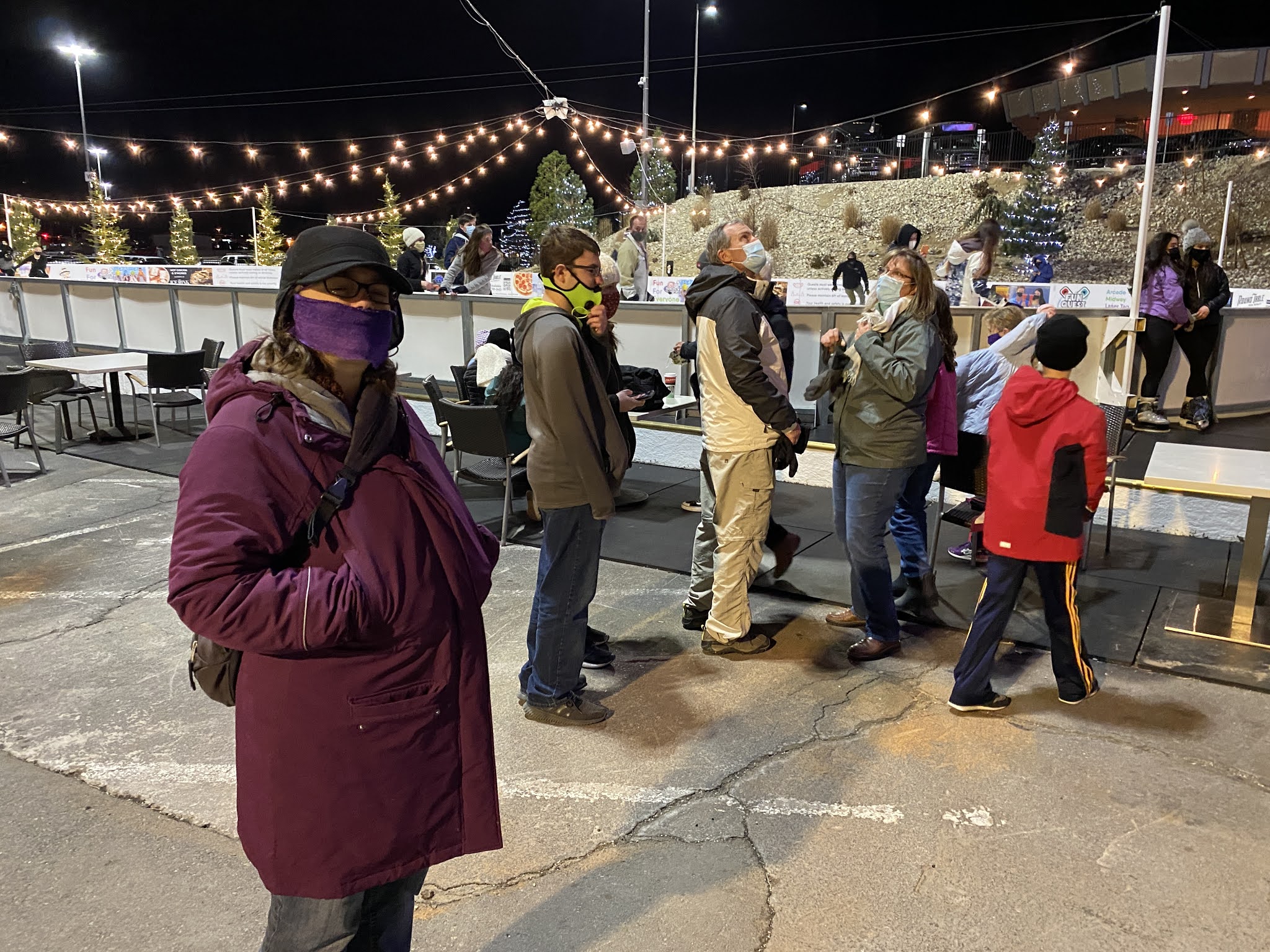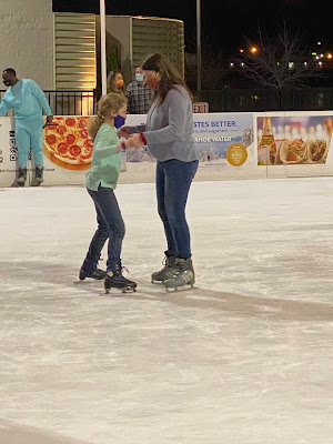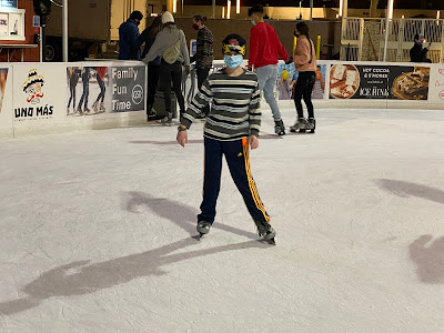 standing outside the skating rink (had to wear our masks)