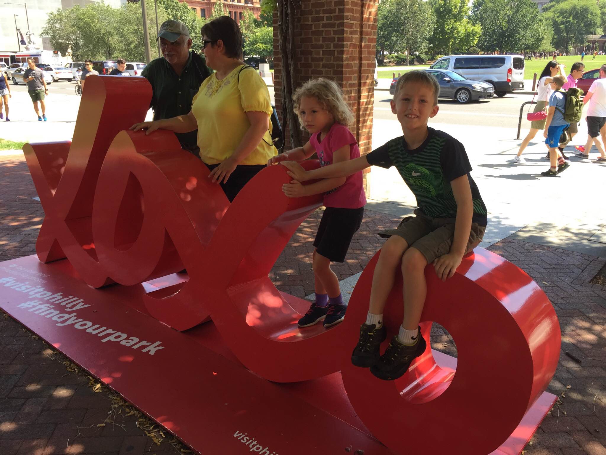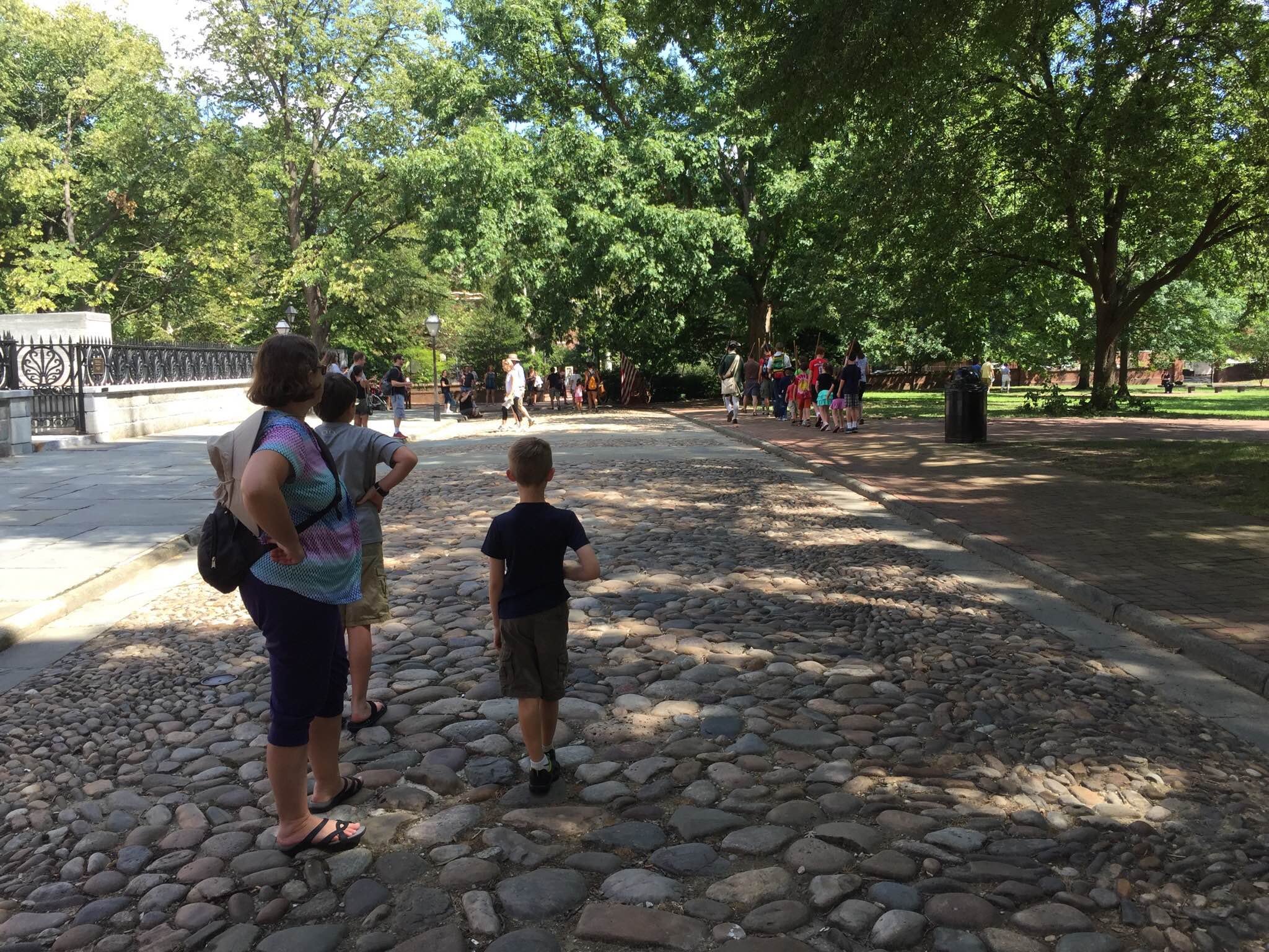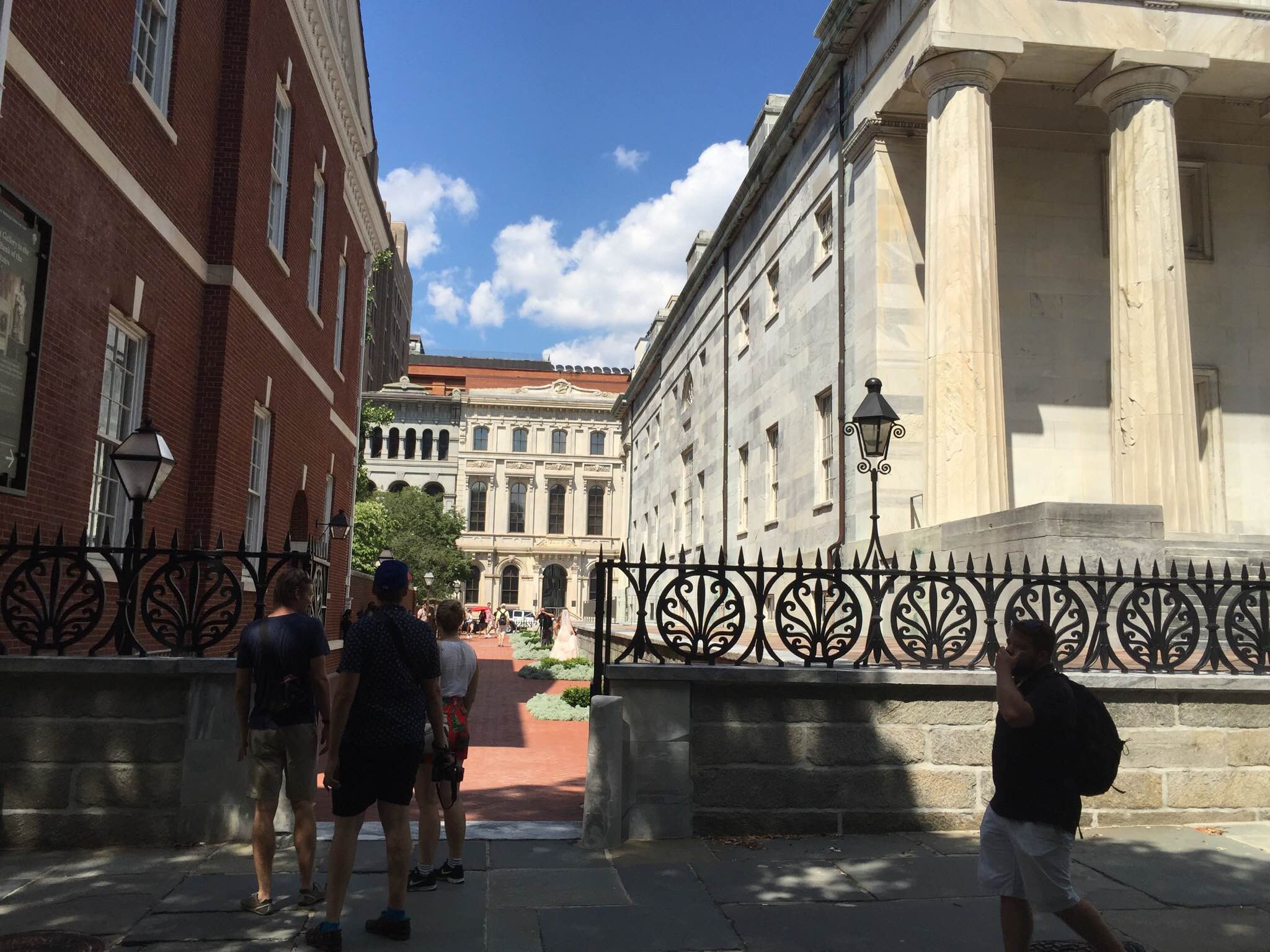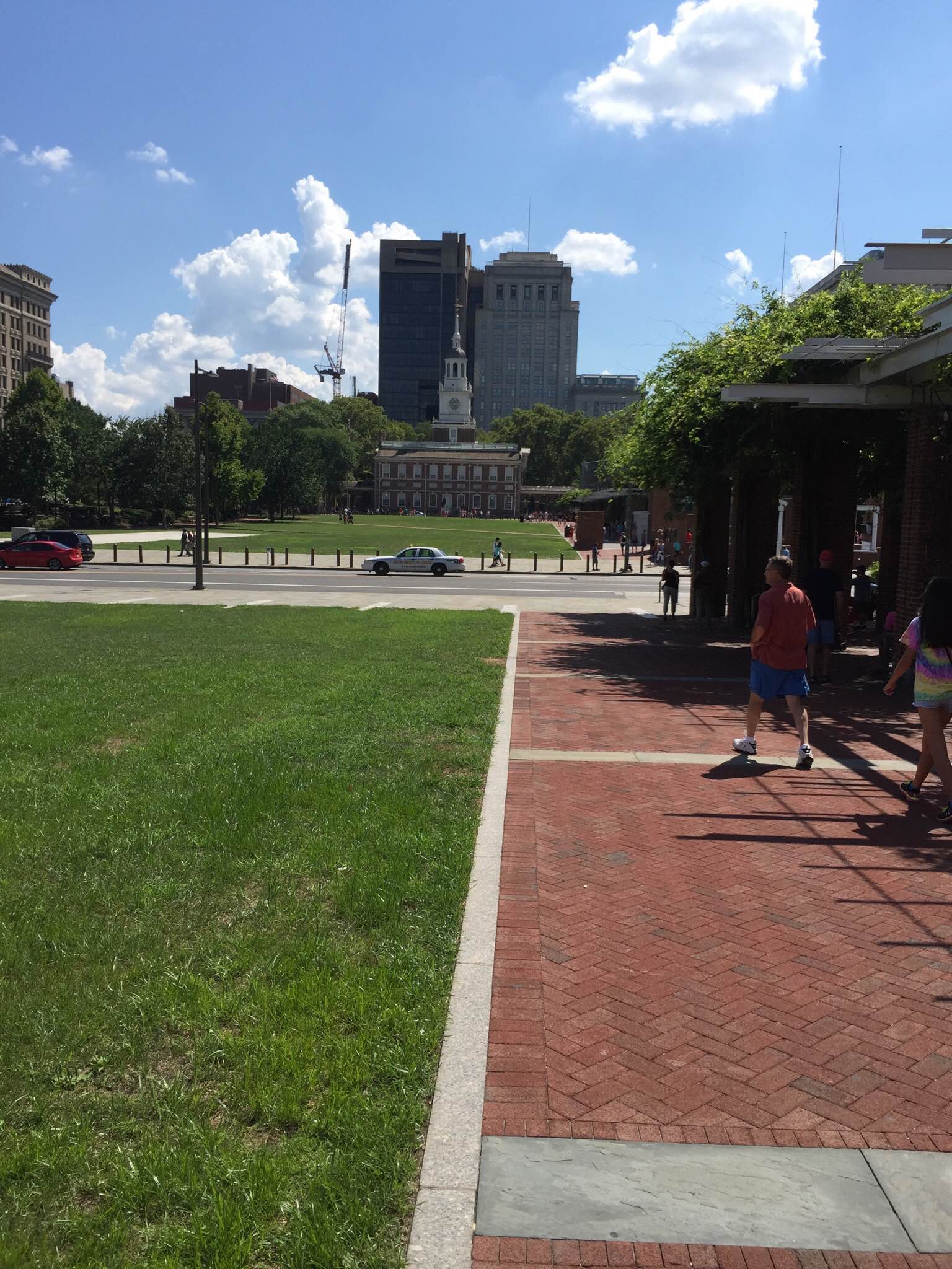 Independence Hall; there was a long line of people waiting to tour inside, and we didn't have time so we just looked around outside.