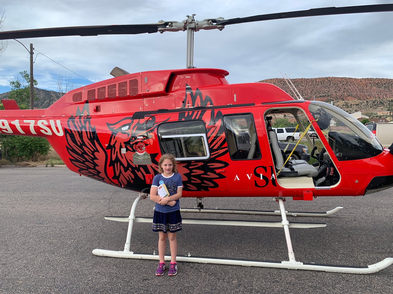The SUU Aviation School had one of their impressive helicopters for everyone to see. We regularly see these red helicopters flying around the area.