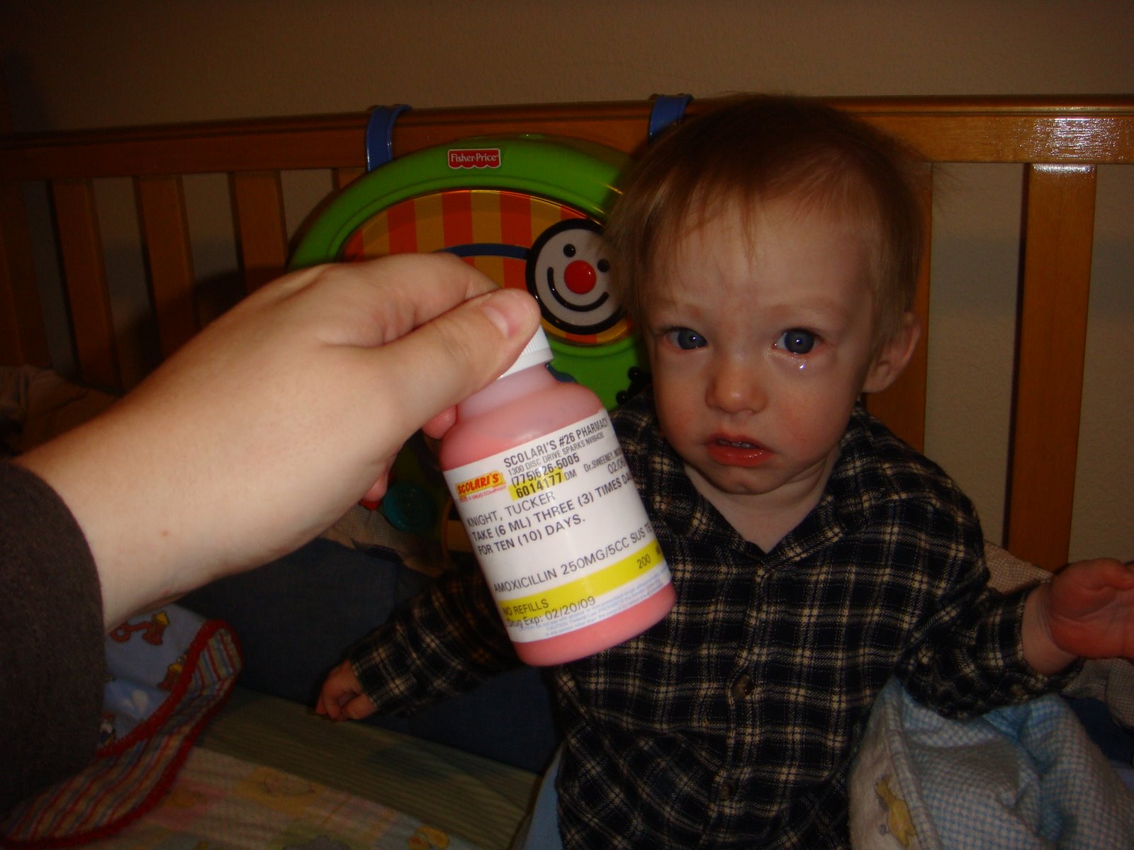 LOL, that one picture looks like you're threatening him with the medicine or something...