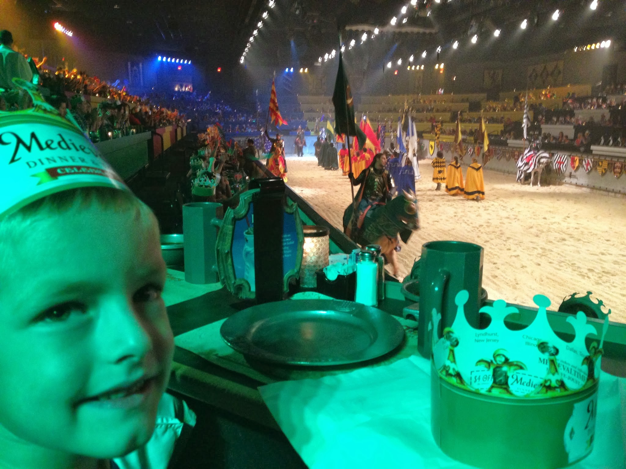 The green knight rode for us and won the tournament! The kids loved that their knight won for us.