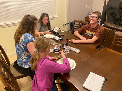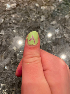The girls had a "Maniology" set, so they were making designs on their nails.