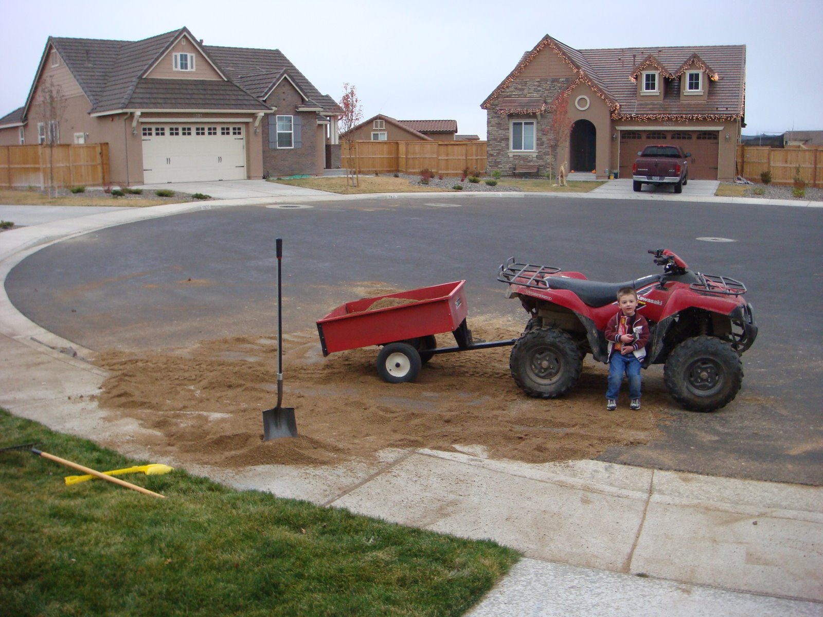 Carson and I moved another six cubic yards of decomposed granite into our backyard today. Luckily, we were nearly done before it started pouring rain.