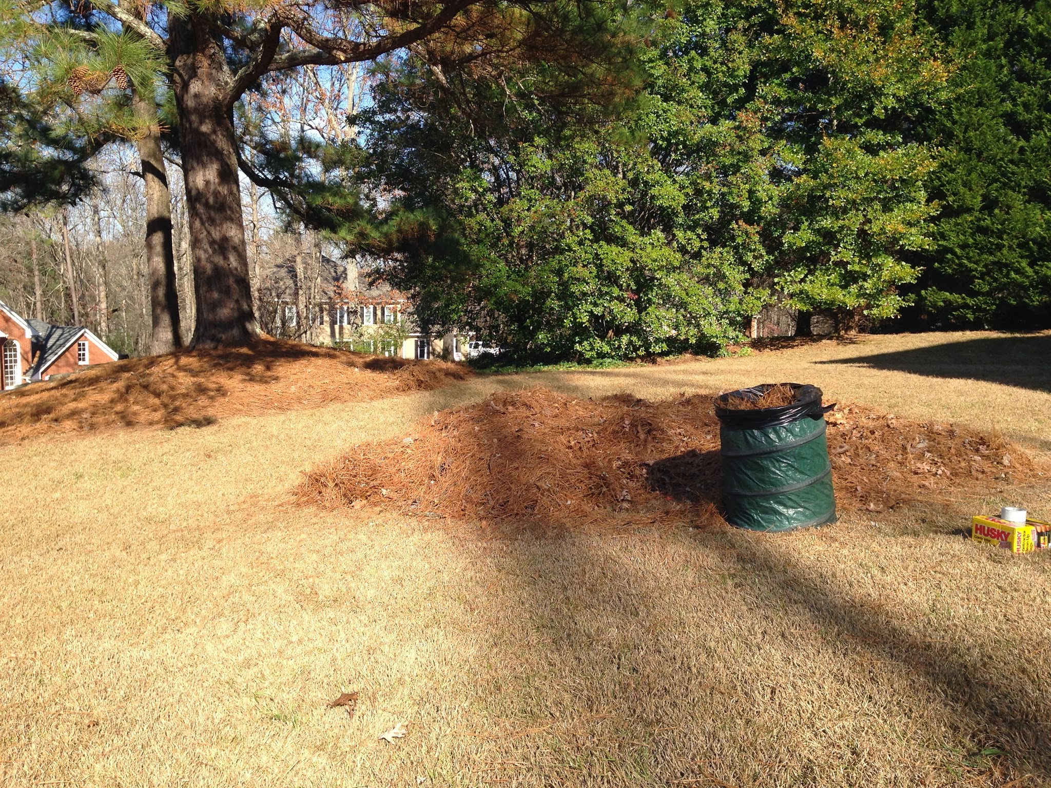 When it's windy, pine needles and leaves rain down and cover the lawn