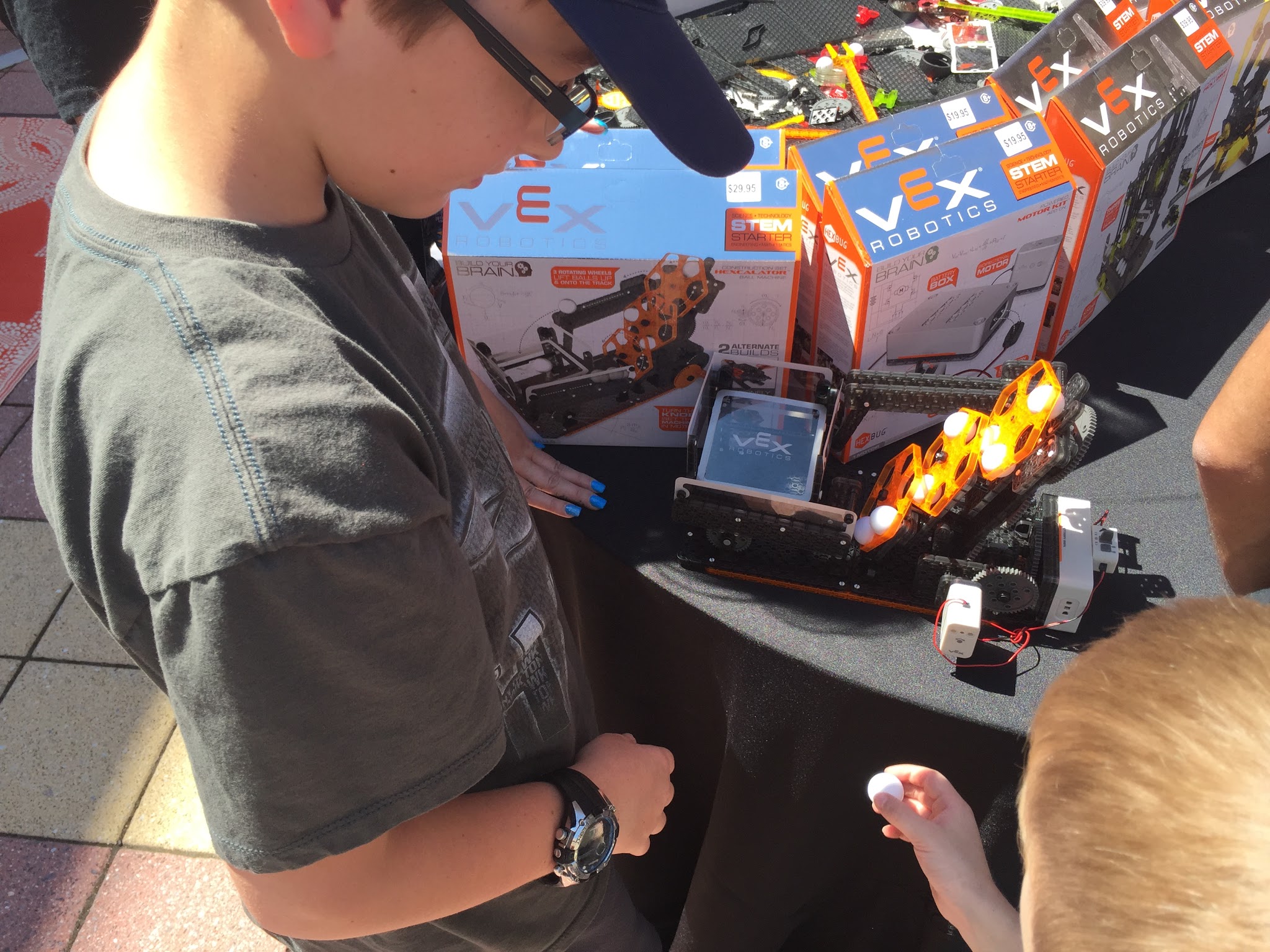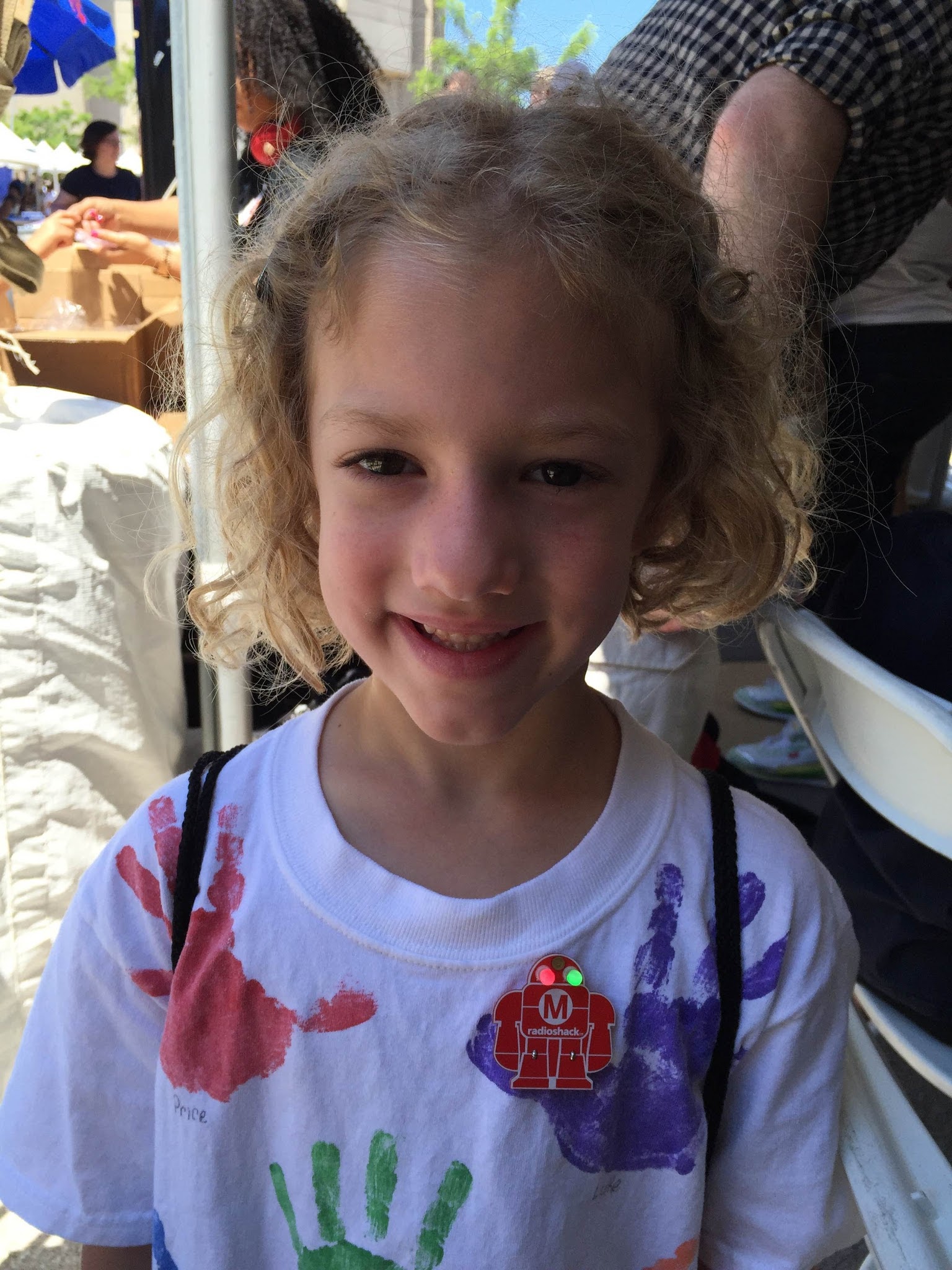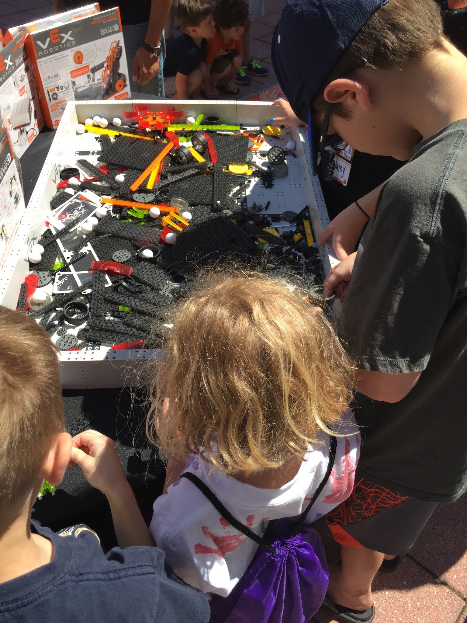 lots of booths sponsored by robotics and tech companies. This one is a RadioShack tent where the kids learned about soldering. They each got a kit and an employee helped them to put them together.