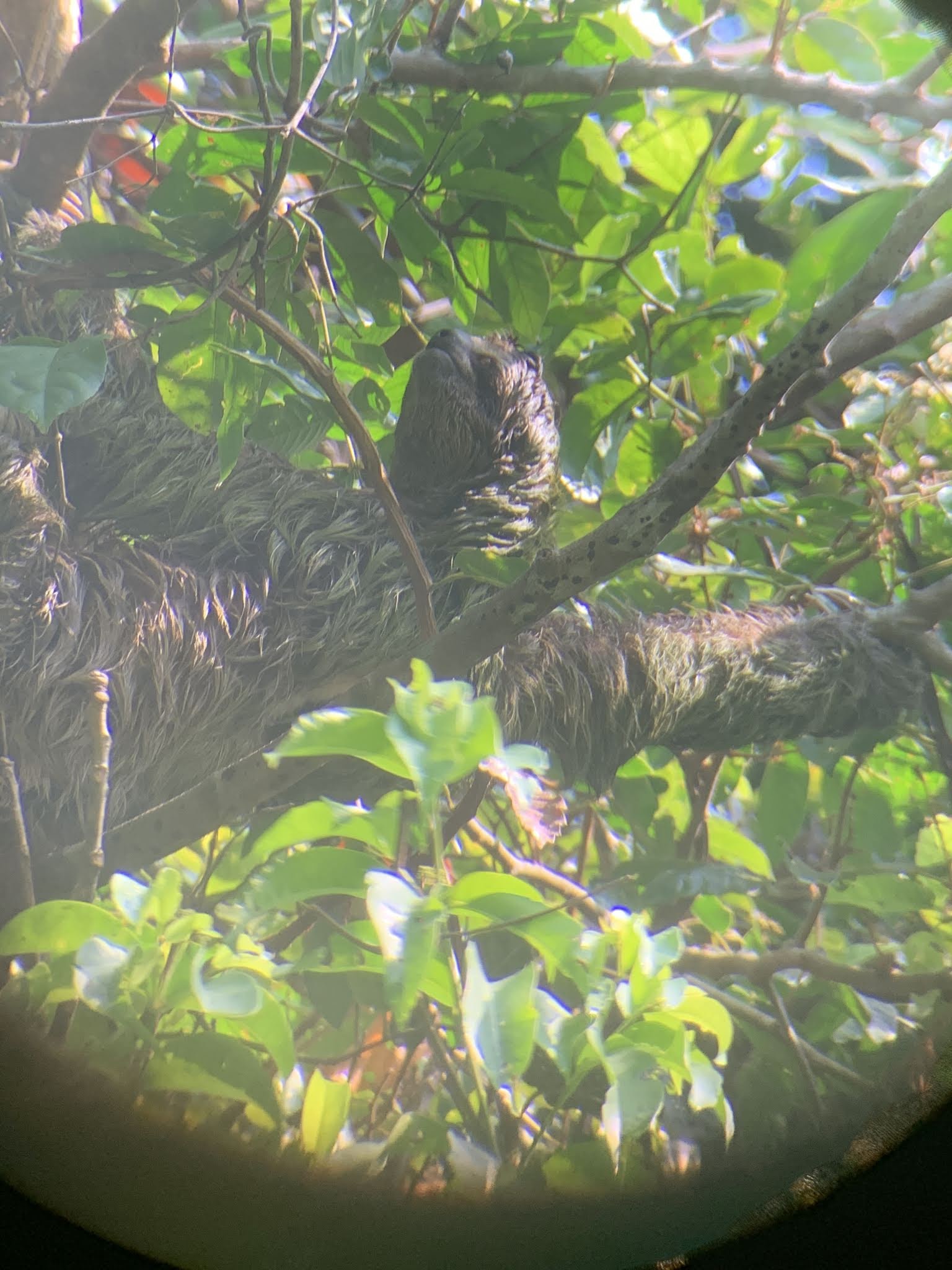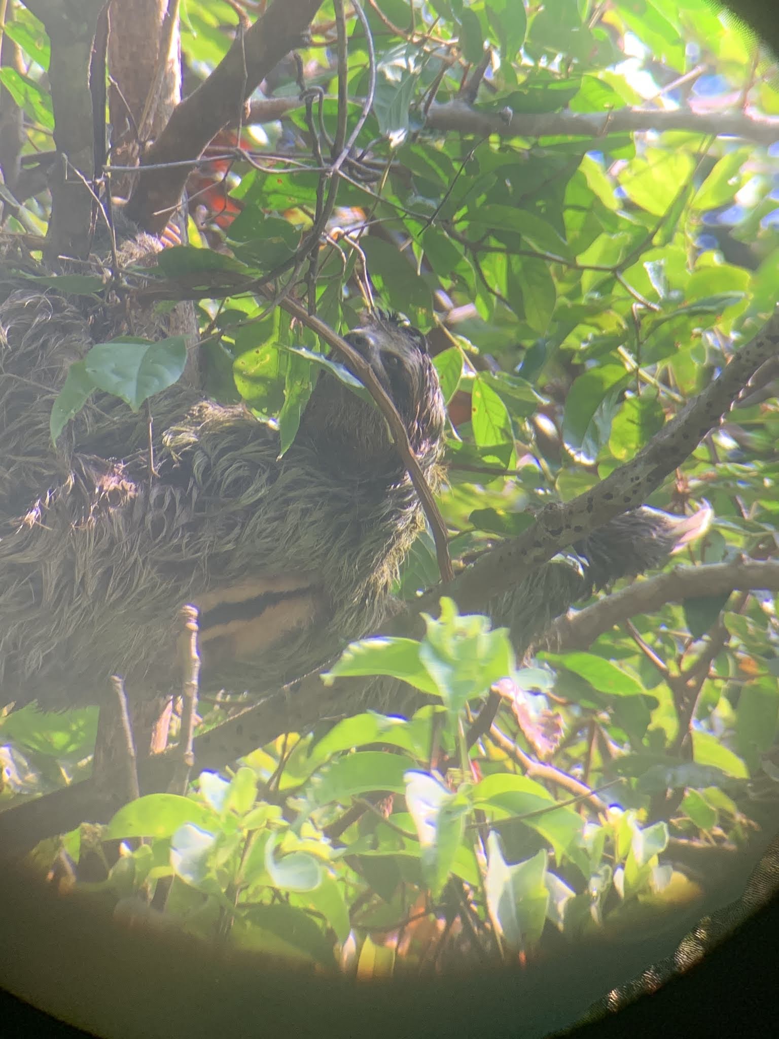 Our guide had a telescope and would focus his scope and let us look at a close-up view of sloths and birds and monkeys