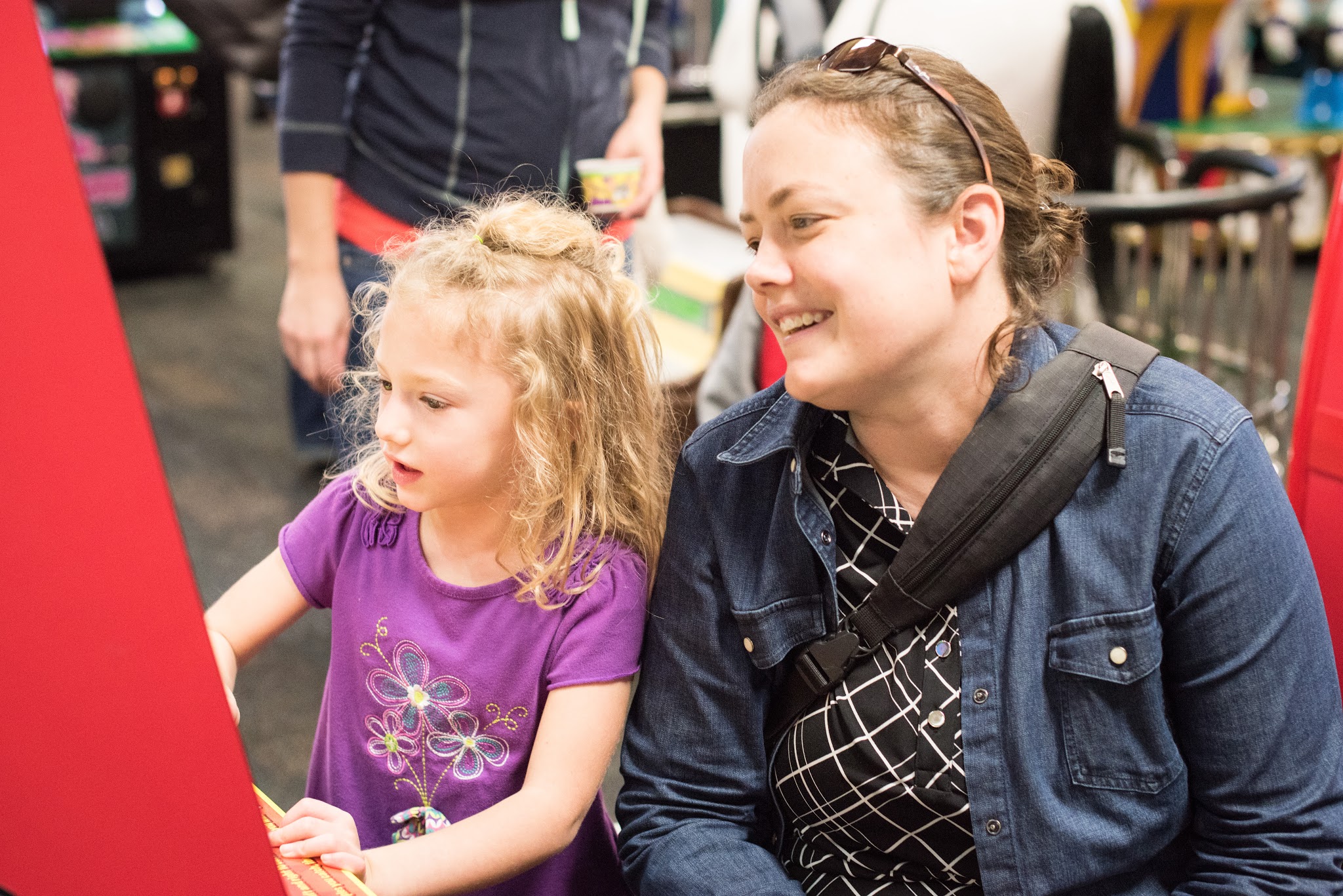 Savannah went to a birthday party at Chuck E Cheese for two of her friends, and this is us using up the tokens.