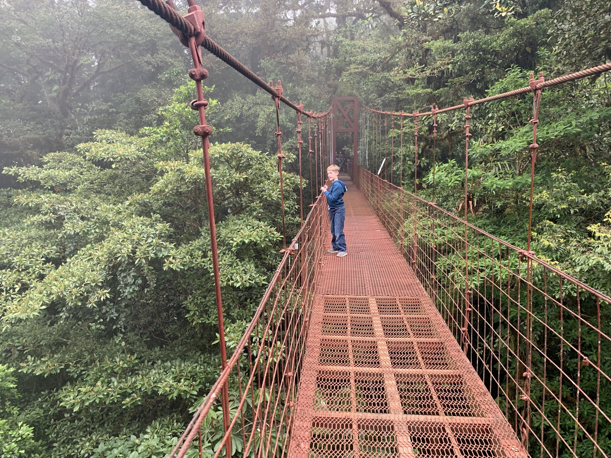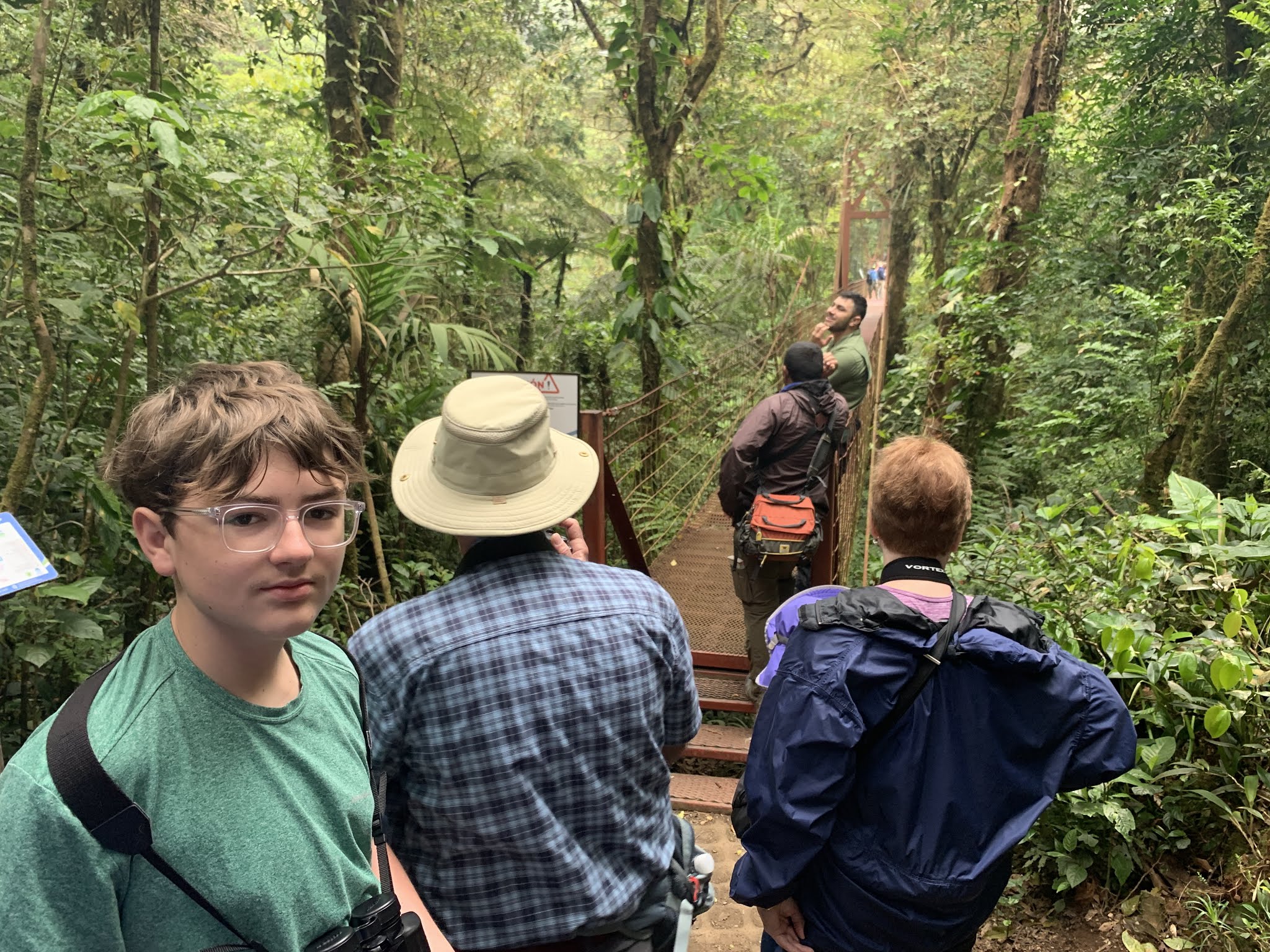 Later on the trail, there is a hanging bridge (for which there was another long line) and luckily there was a male and femal Quetzal for us to watch, so it was worth waiting for.