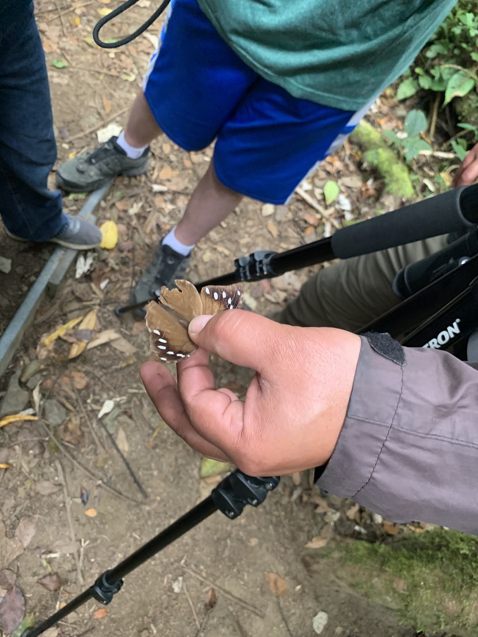 Here, he is showing us a butterfly that was inside the crevice of a tree.