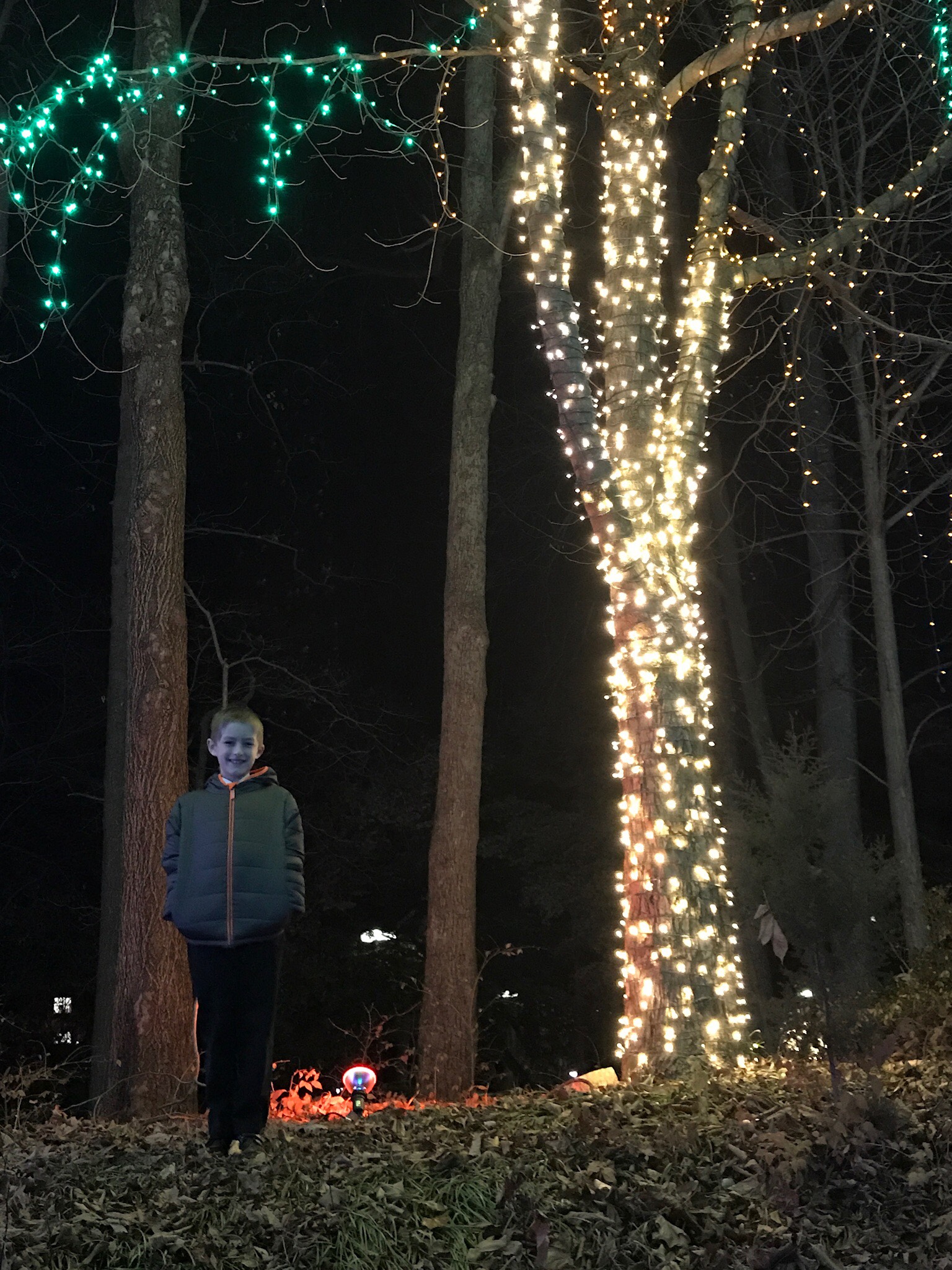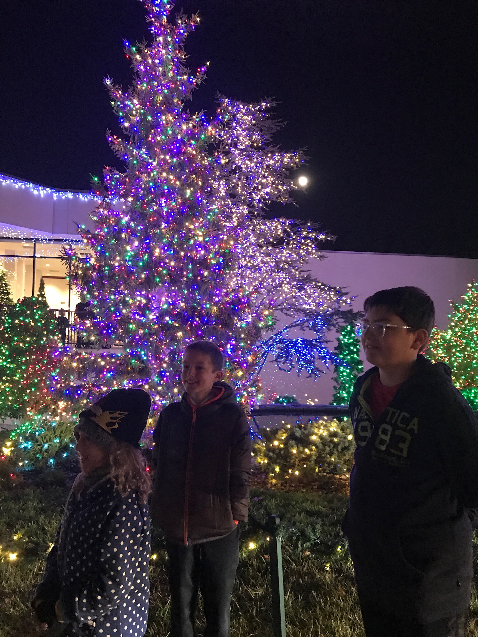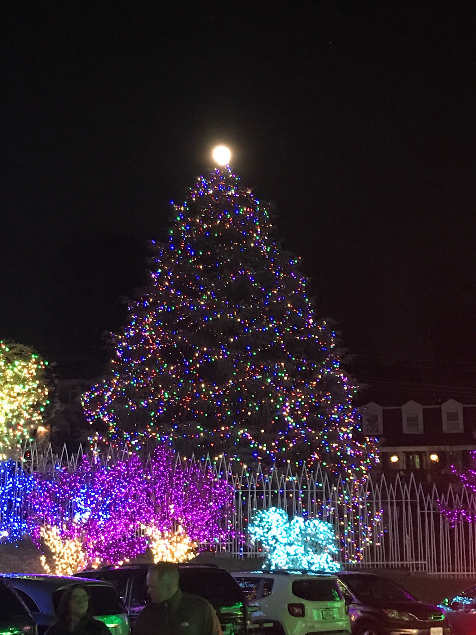 There was a full moon, so Carson suggested that we take the picture with it as the 'star' on the top of the tree.
