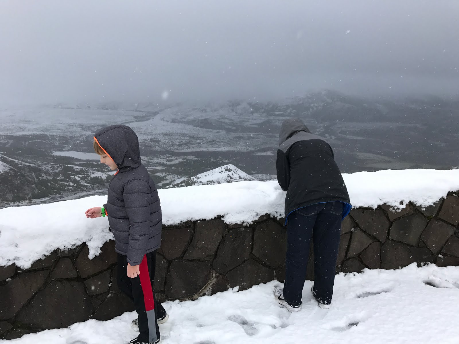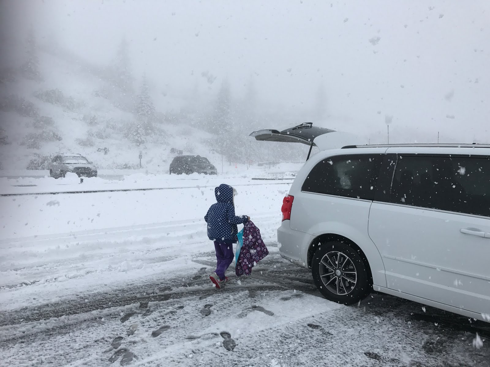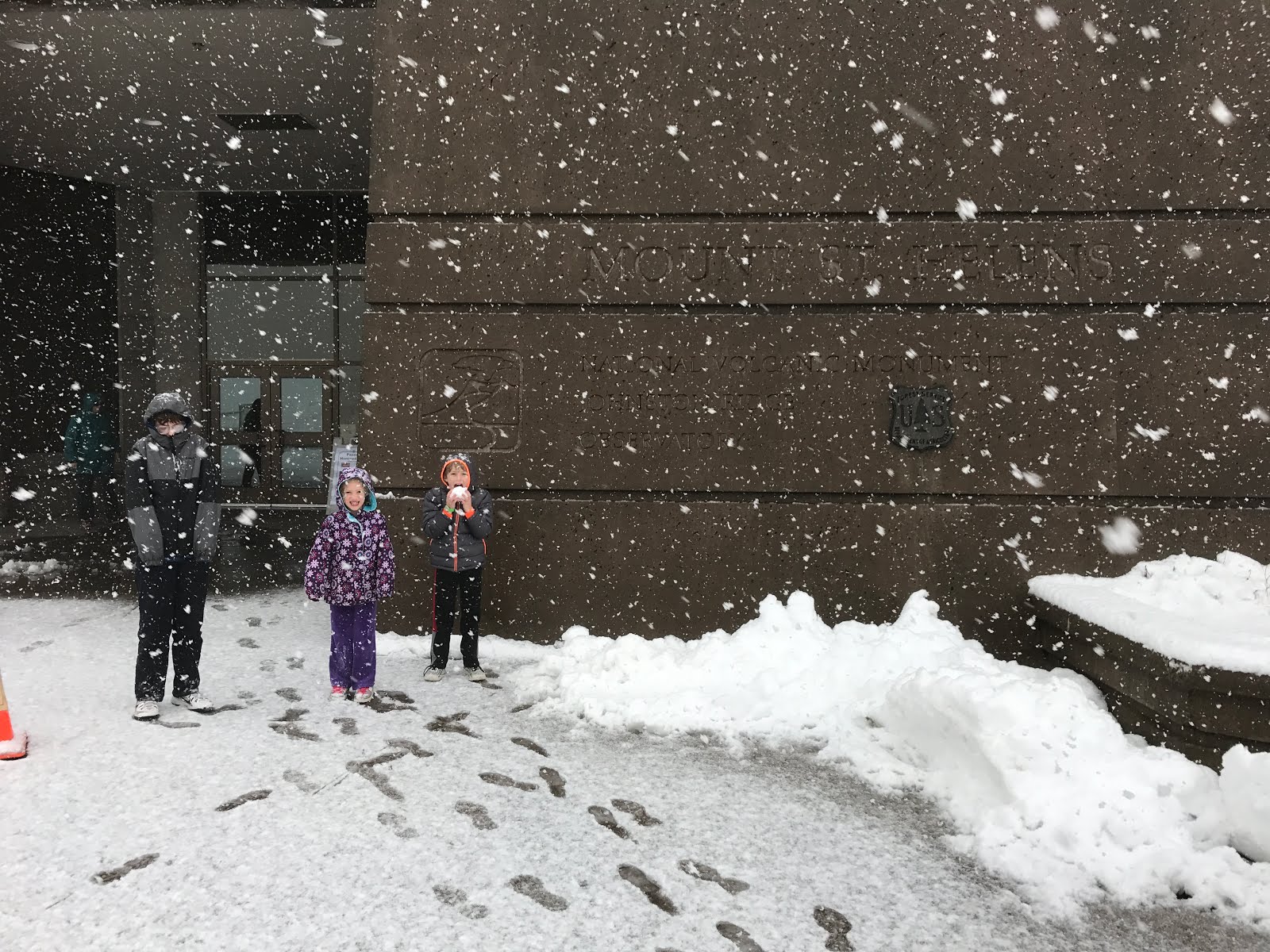 We pressed forward anyway, hoping to see something. As we neared the volcano, it started lightly snowing, then more and more heavily. By the time we approached, we started to doubt it was a good idea - the snow was really coming down and we were just in a two wheel drive rental mini-van.