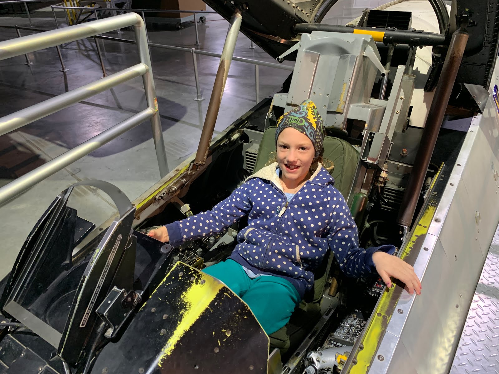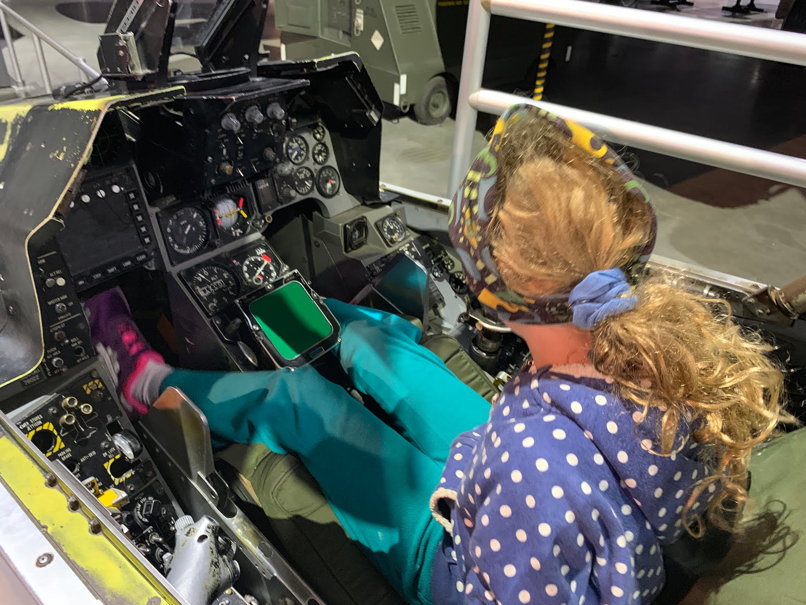 Sitting in the cockpit of a fighter jet, I think it was an F-14.