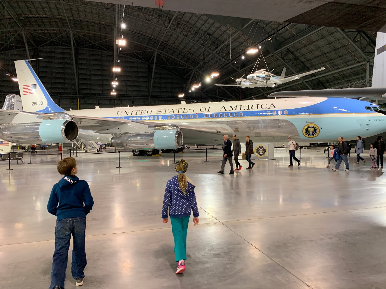 Air Force 1, used during the Kennedy, Johnson, and Reagan administrations. They actually let you walk through it and see the inside.