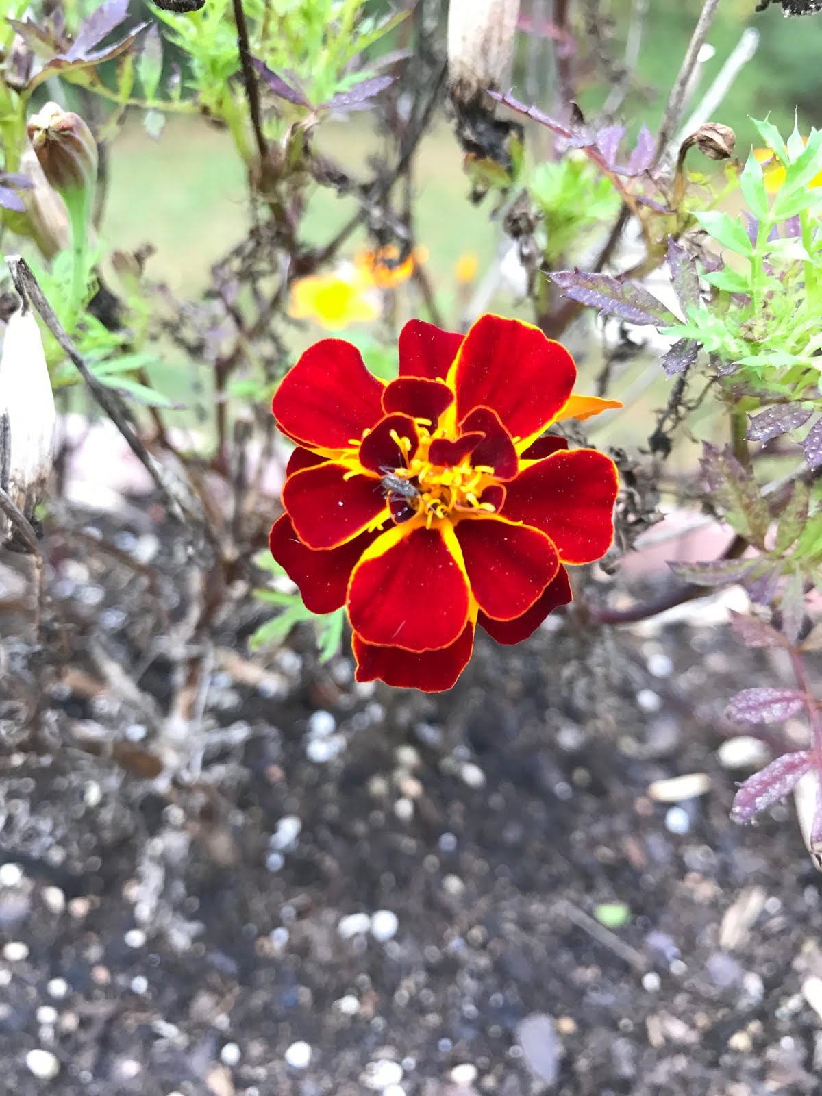 I love how this beautiful flower is growing out of a mostly dead plant.
