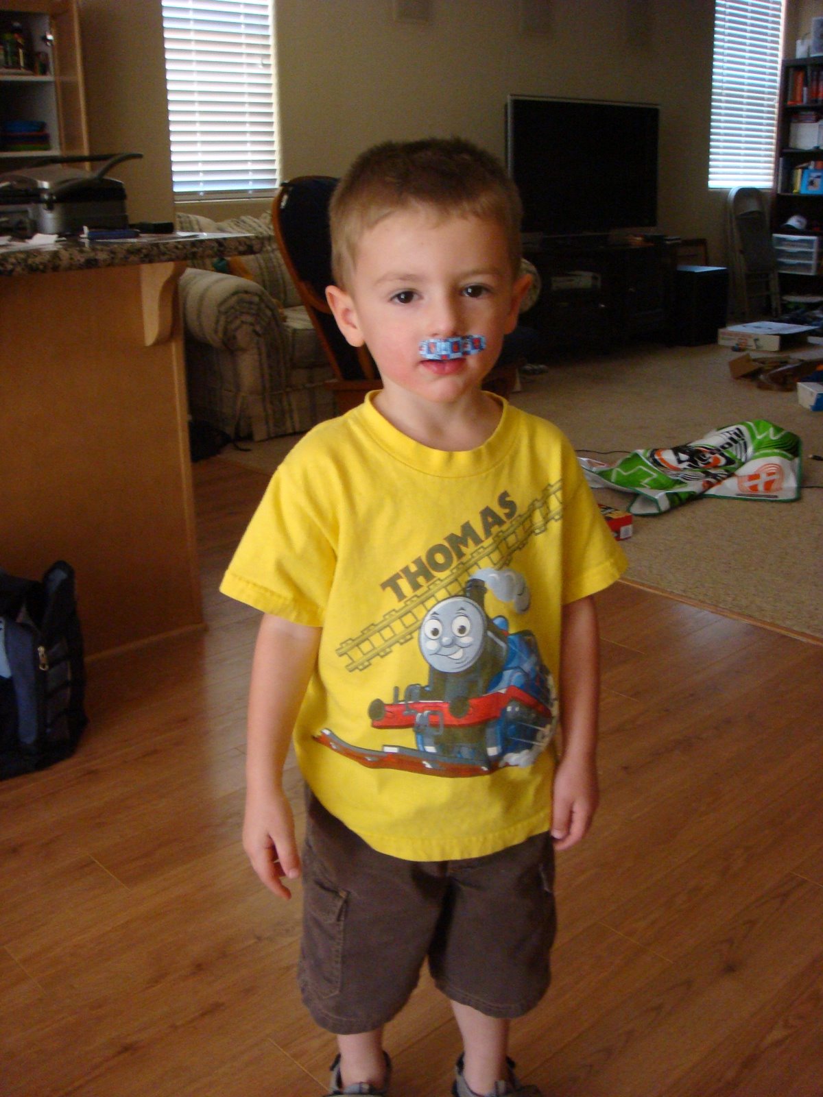 You know something is sour when it takes a band-aid to make you feel better! Taking after Grandma Aksland, Carson loves sour foods -- so he tried to eat a lime today. Afterwards, a band-aid was the only acceptable cure.