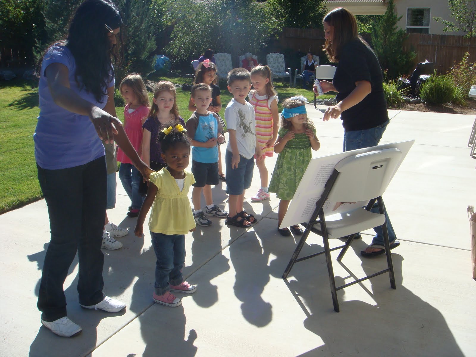 Christina had her 6th birthday party today. Here are the kids playing pin the tail on the horse.