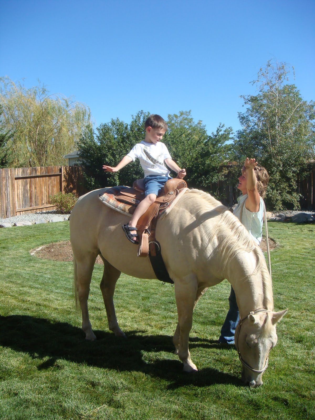 I guess this is an exercise to help the kids feel more comfortable on the horse, even without holding on.