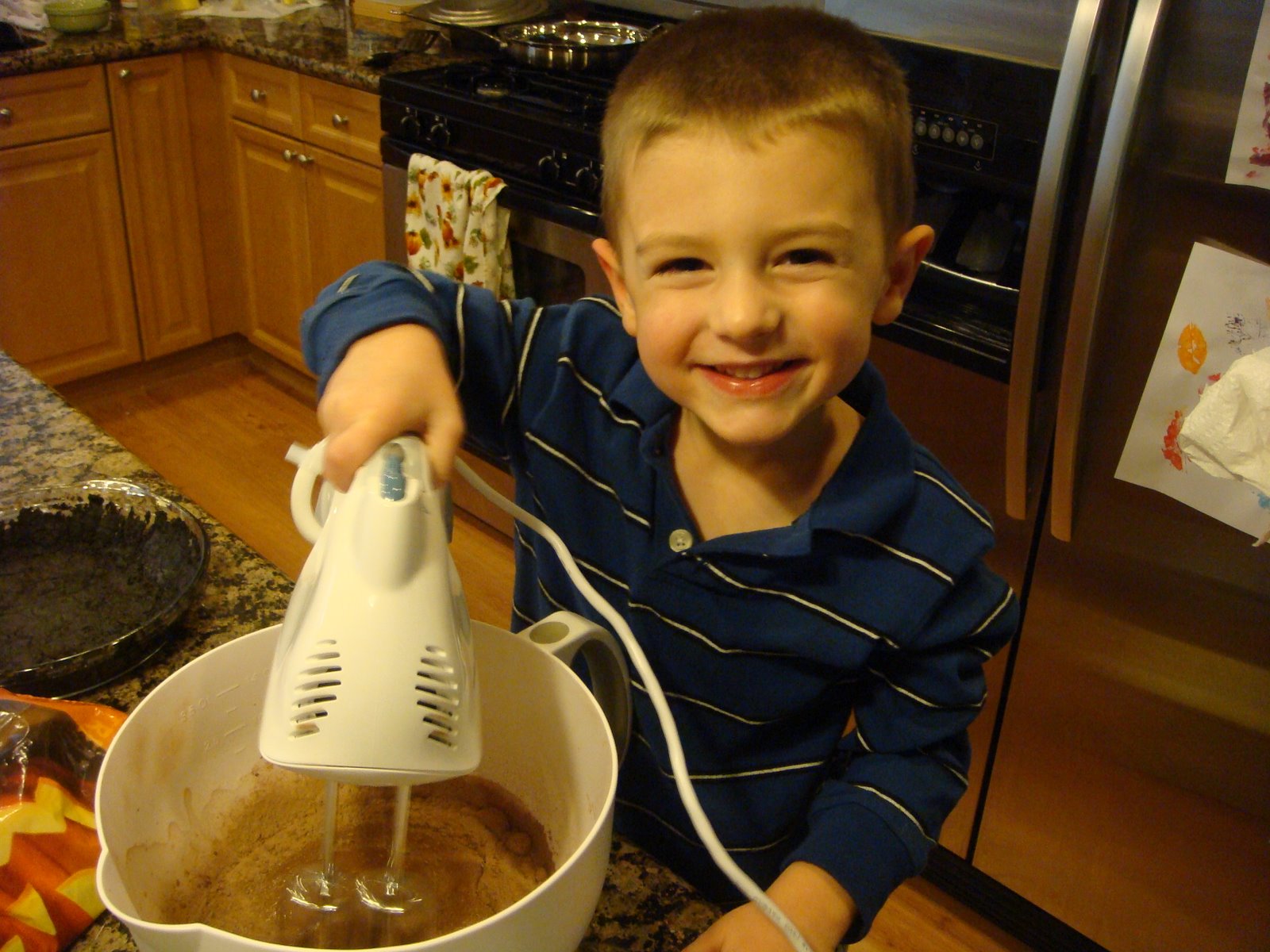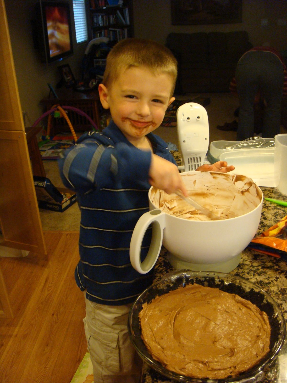 Carson has inherited a sweet tooth from both his Mom and Dad. So he loved his opportunity to make a yummy dessert for dinner at Grandma and Grandpa Knight's house today. He did a great job.