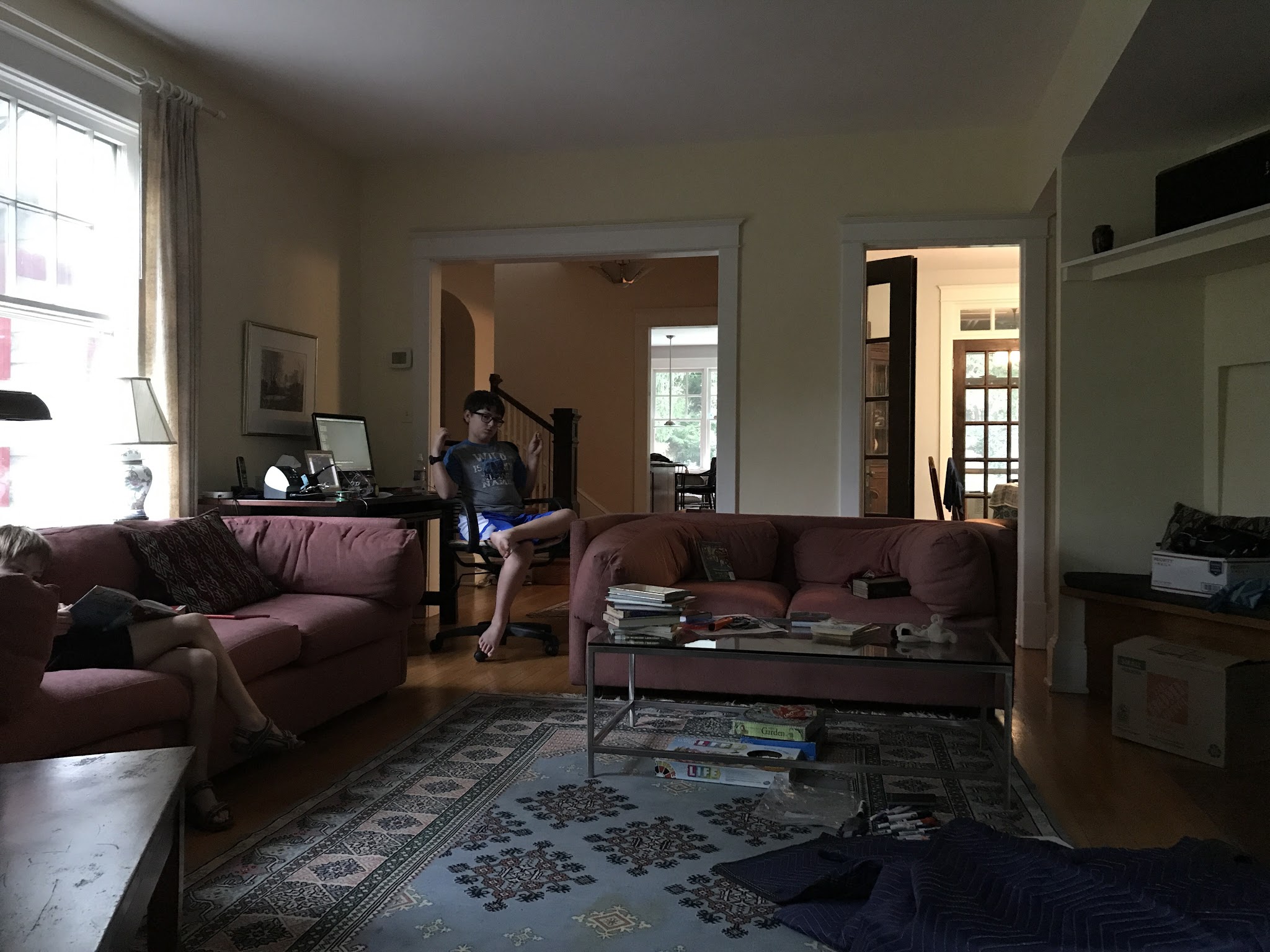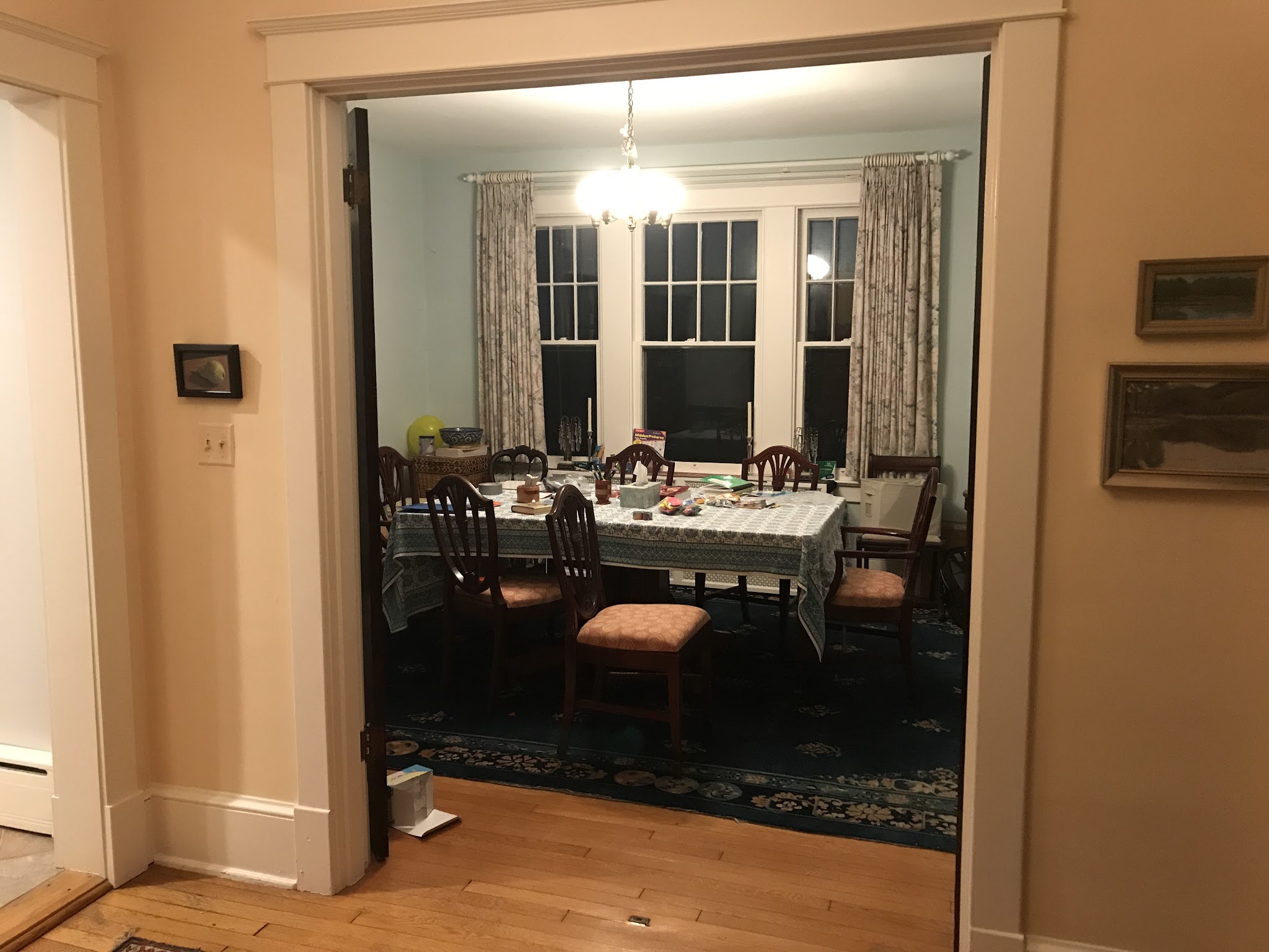 We use the dining room for our school room. Rock Creek park is a short walk down the street, and there's a fun playground close by. We are closer to downtown, so we'll go to the museums more often. It is a beautiful and peaceful neighborhood with nice neighbors. We are already enjoying living here.