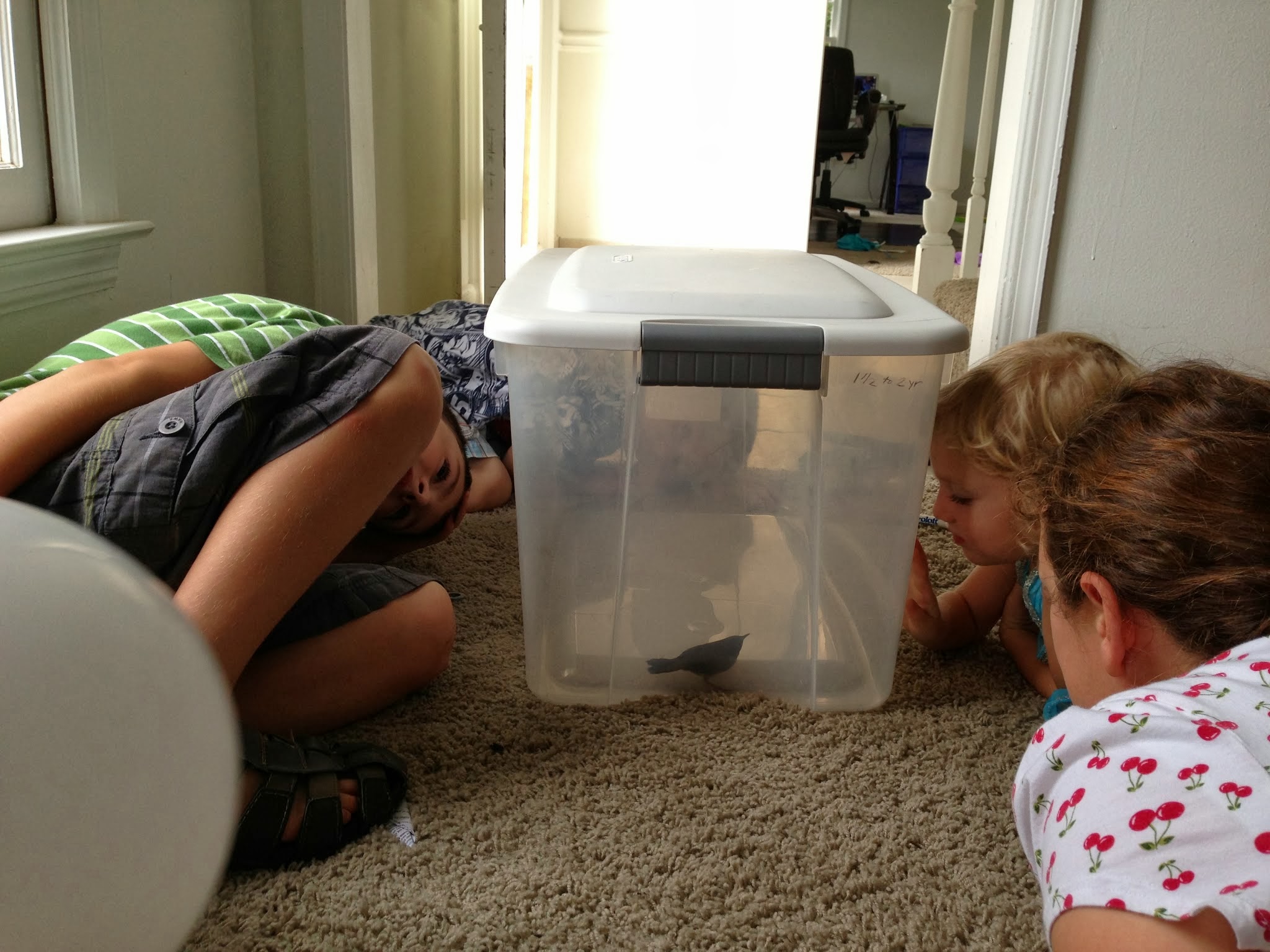 A young bird flew into our house.  So we caught it and after watching it for a little while, we released it outside.