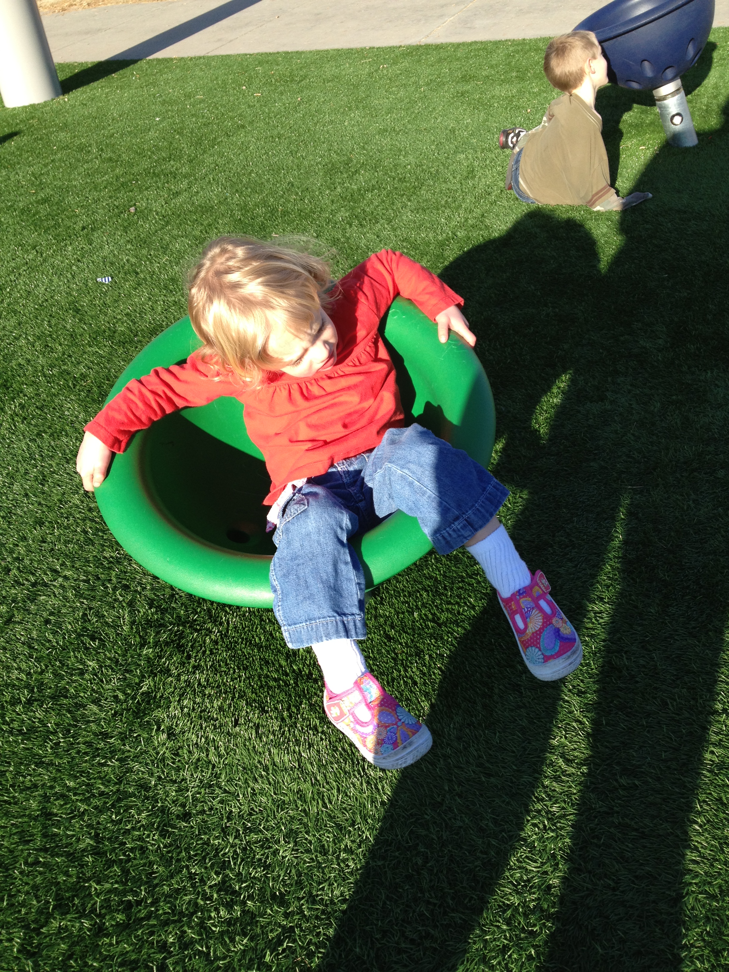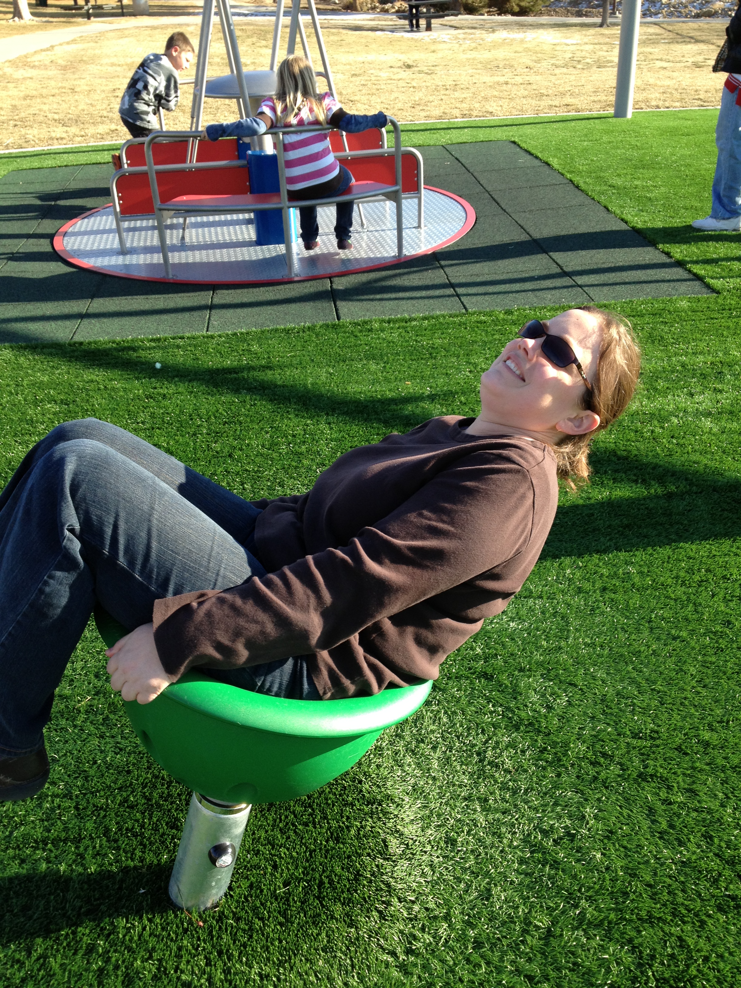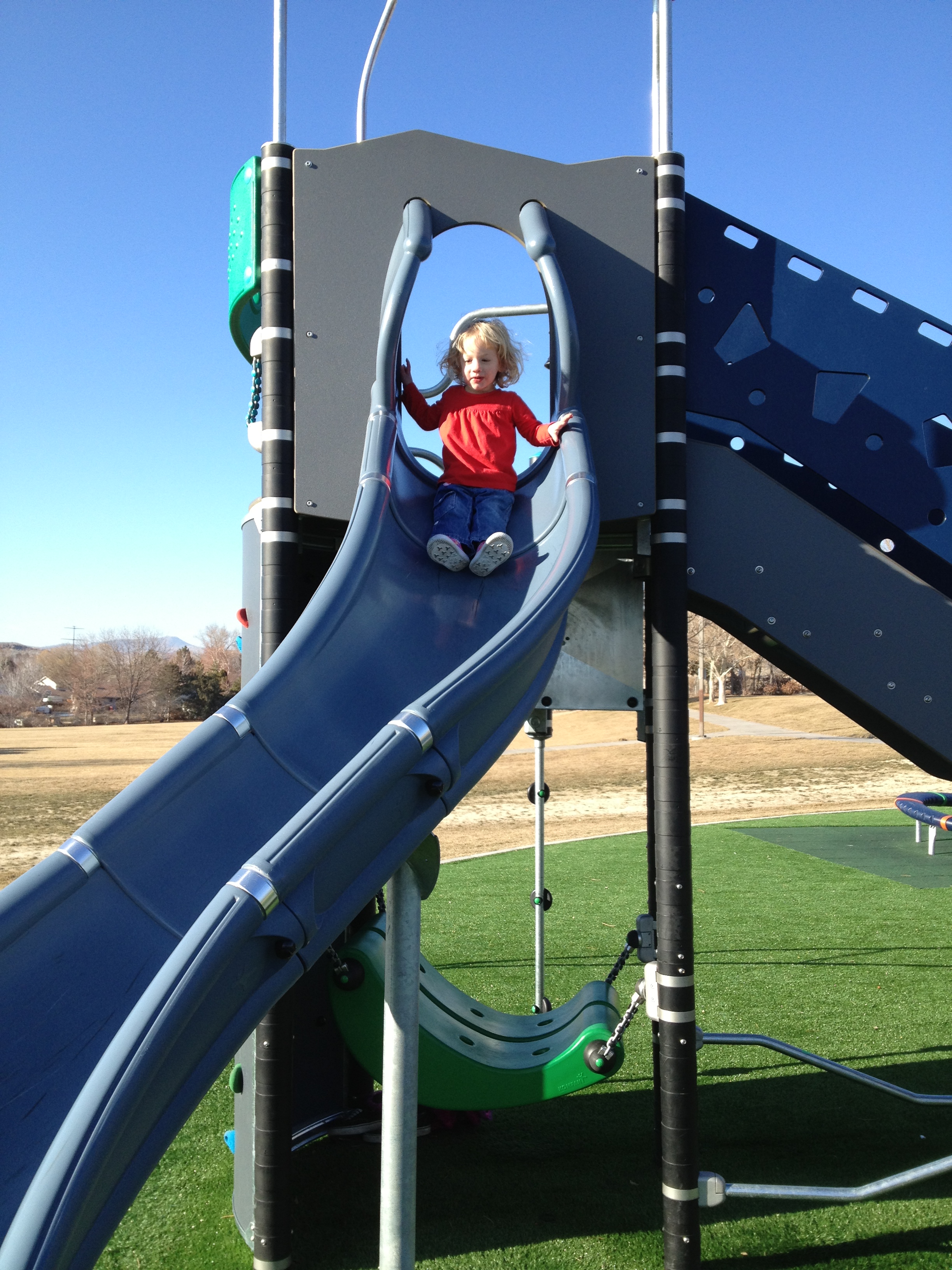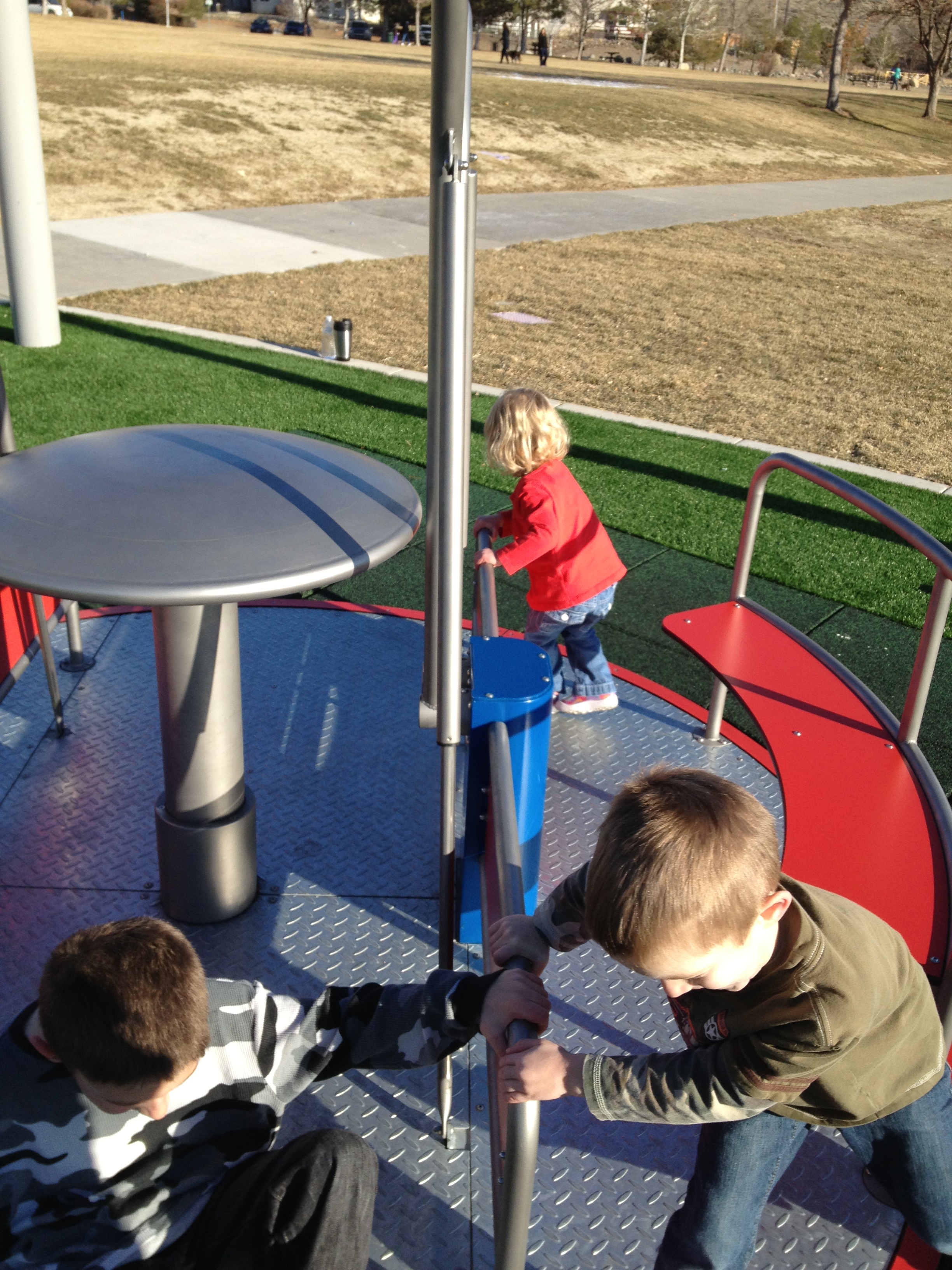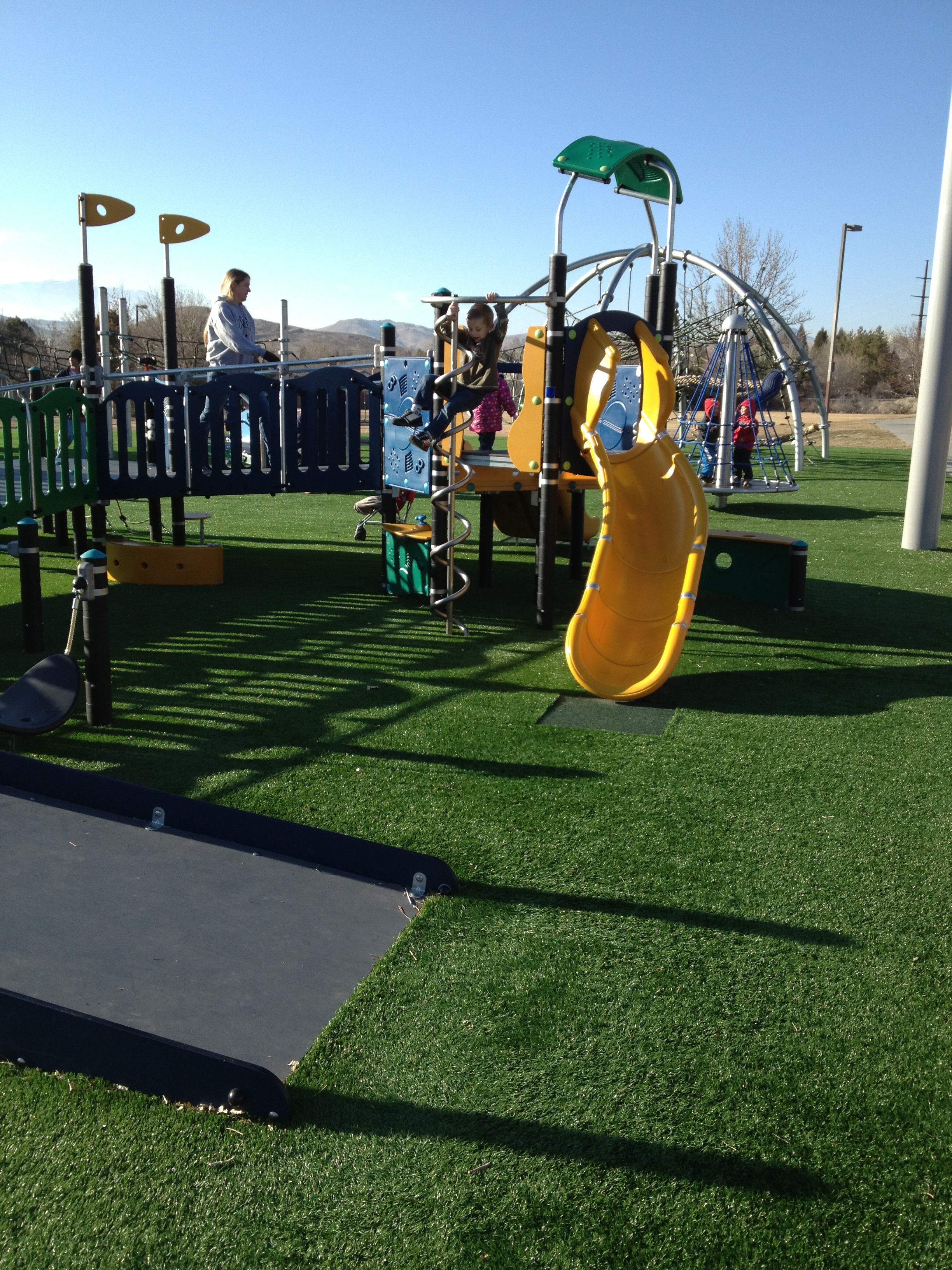Brand new, awesome park in Sparks just down the street from us. The grass is fake, and there is a big climbing structure with ropes, and a merry go round!