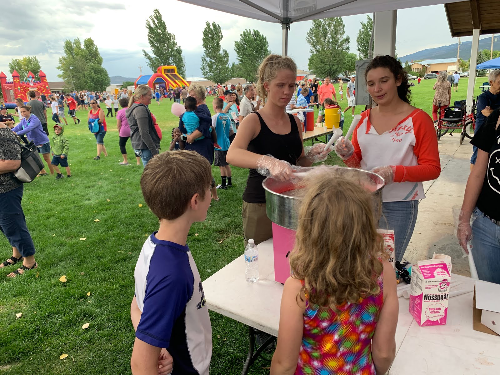 The local Baptist church provided free cotton candy, popcorn, and snow cones. There were also free bounce houses.