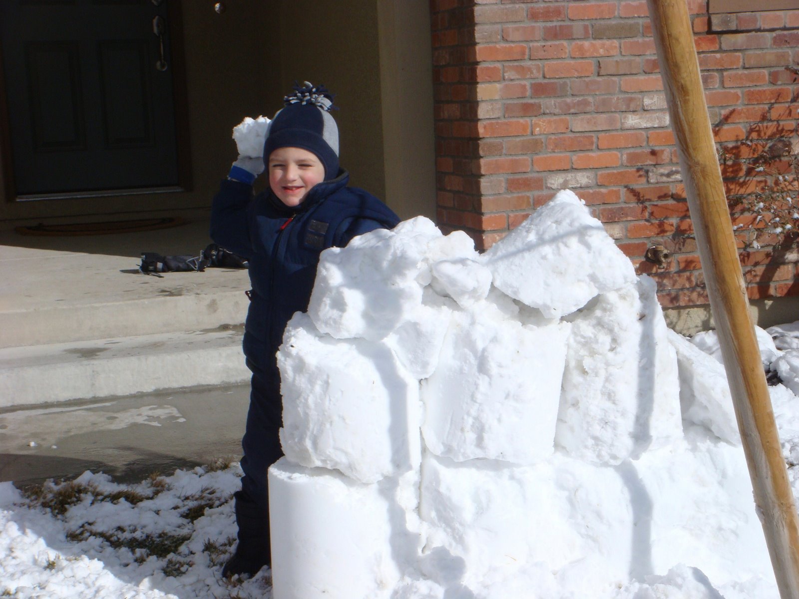 Seeing as this was Andrea's first White Christmas, we had to build a snowman. The snow didn't stick together very well, so it was a pretty skinny snowman. I also taught Carson how to build a snow fort, which he quickly toppled over. This is a picture of what I could salvage.