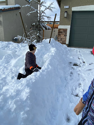 Last week, we had a couple of huge snowstorms. Tucker and Savannah built forts all over the neighborhood.