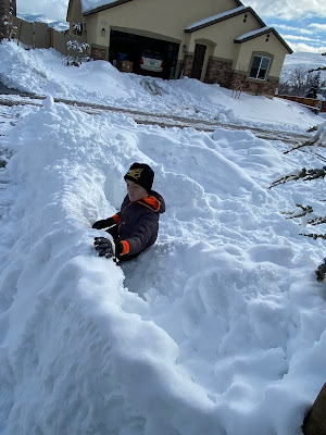 This one is in front of our house, Carson had a hand in building this one in those first couple of days when it was snowing all the time.