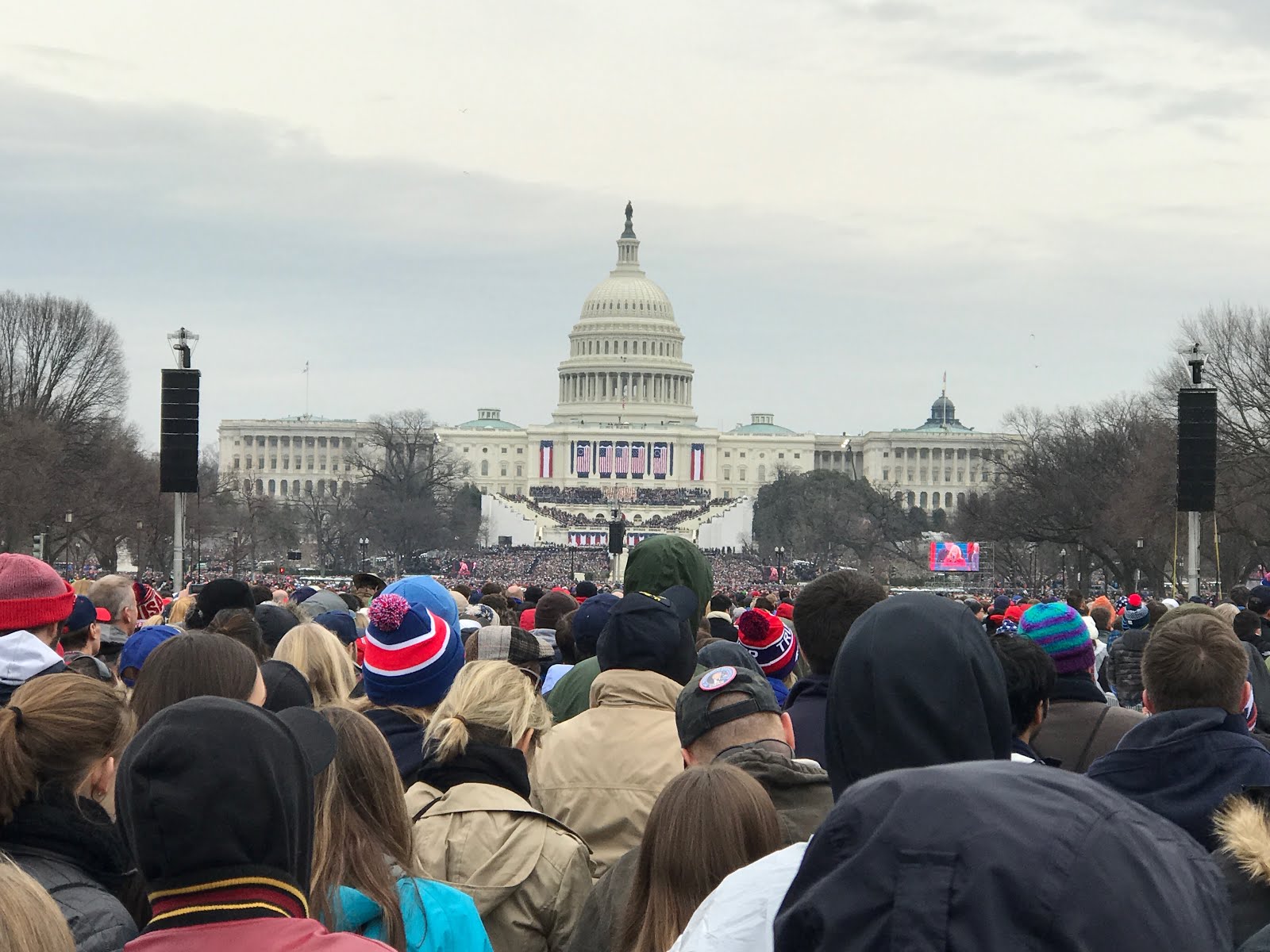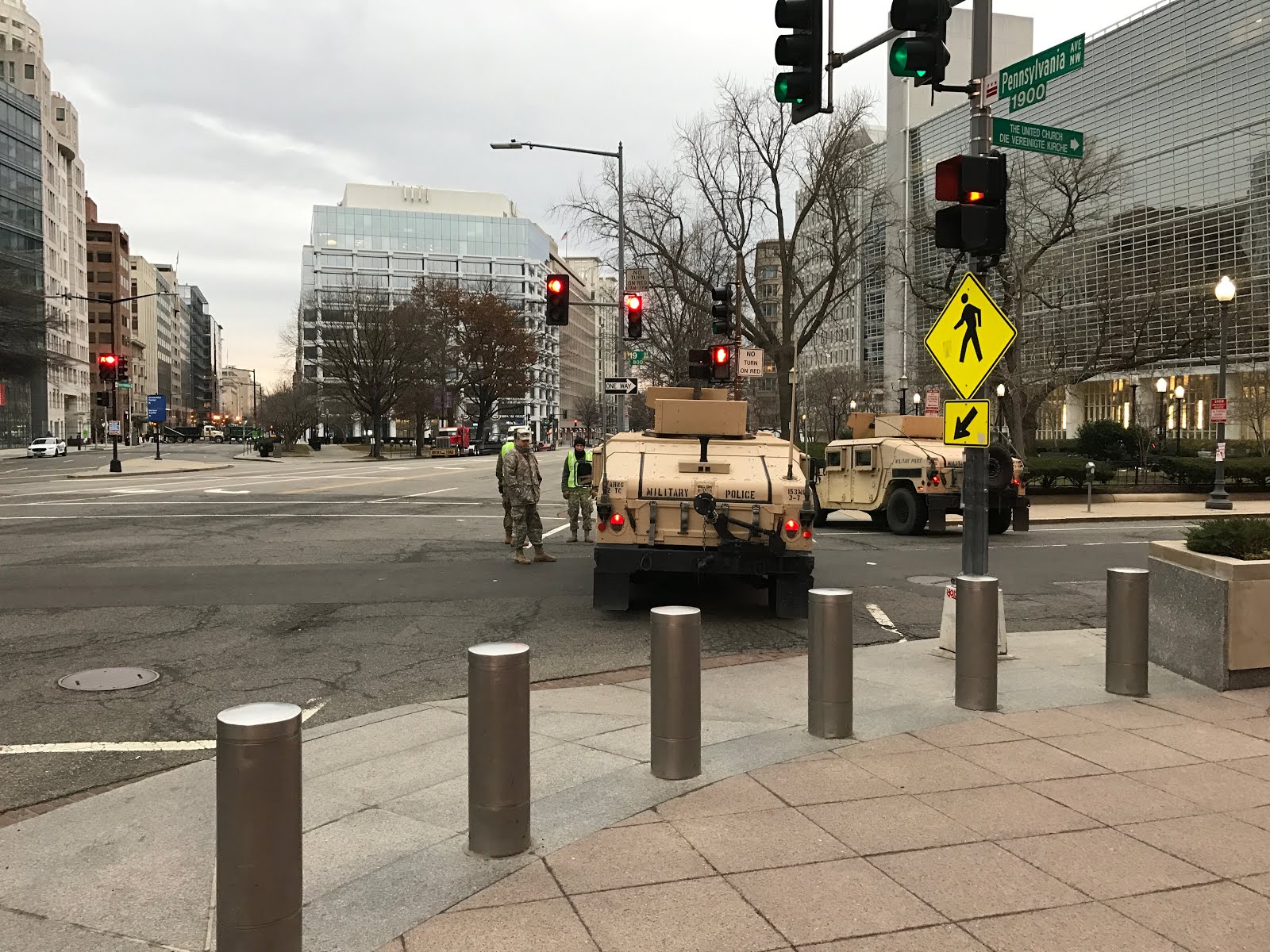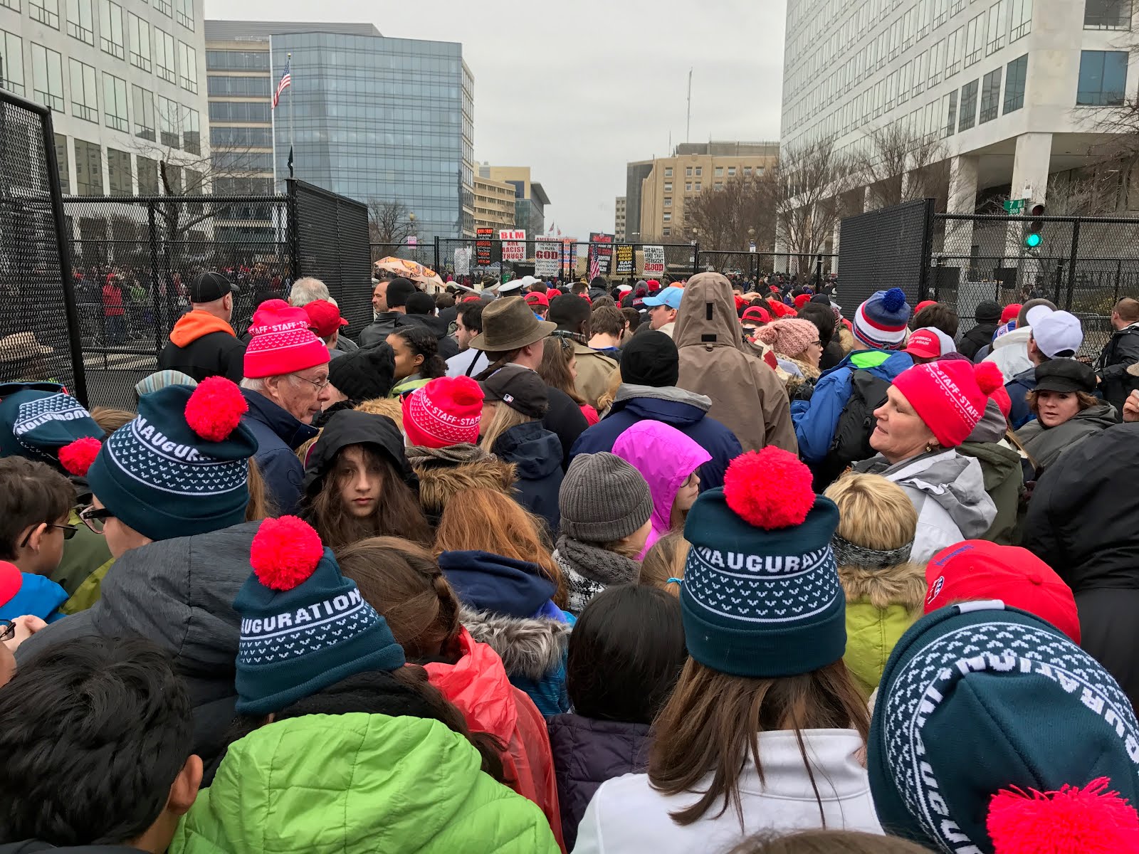 The center of DC was completely blocked off by the military and police. Every street had trucks or military vehicles blocking access with military staff standing by. As you walked by, they were so friendly and welcoming. Each military person greeted us with the warmest, sincerest smiles and the kindest words. We thanked them for their service and made our way towards the Inauguration.