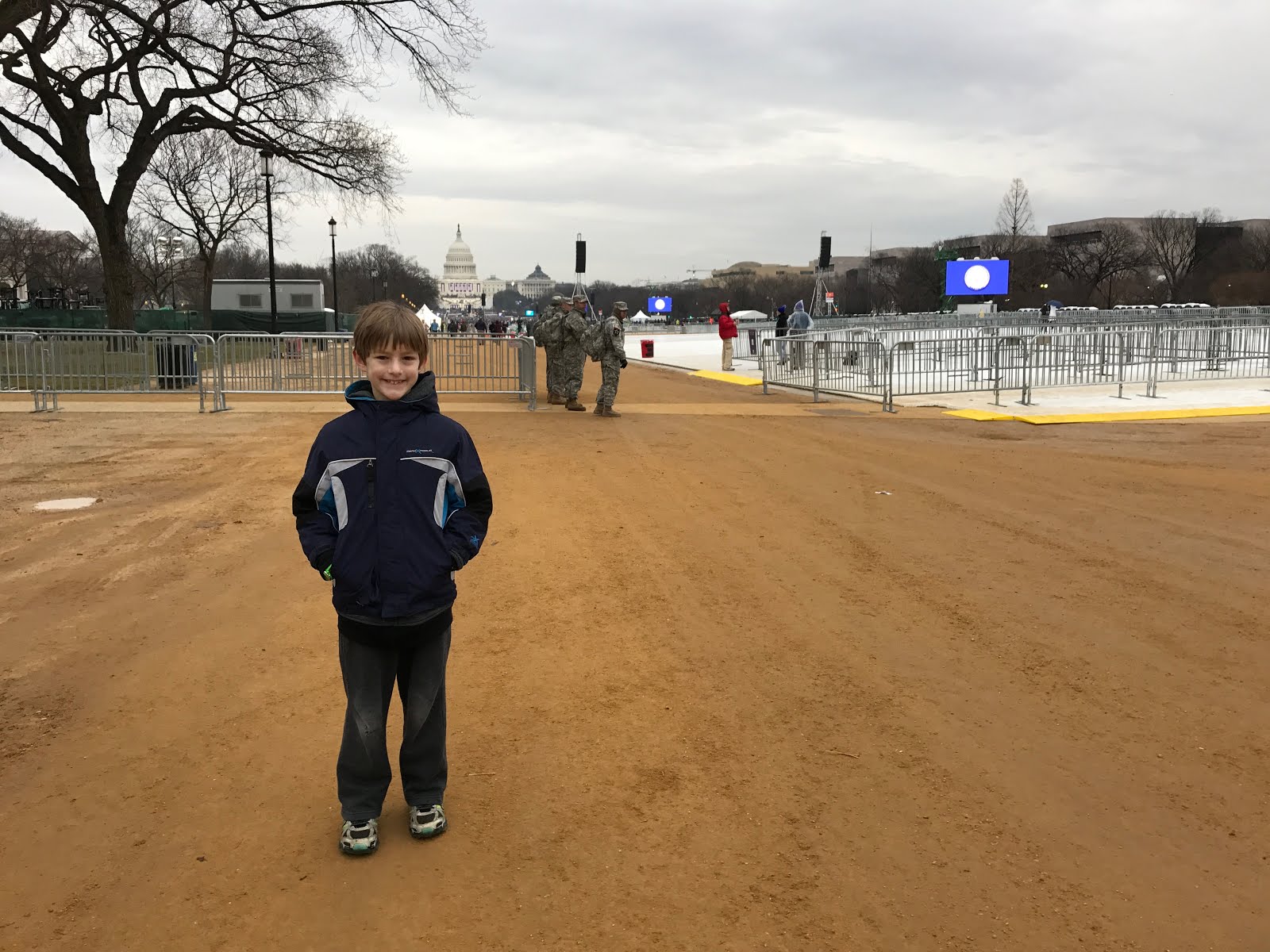 Obviously, we arrived far earlier than necessary. Not having a clue how busy it was going to be, we erred on the cautious side. Thank you Super Mario Brothers for entertaining Tucker while we waited several hours for the event to start. Arriving this early, there were not a lot of people were there, but as you can see in the pictures, there were military stationed everywhere. With all of the threats associated with such an event, you know they must have been stressed and cautious, yet they seemed like they were the nicest, most helpful people.
