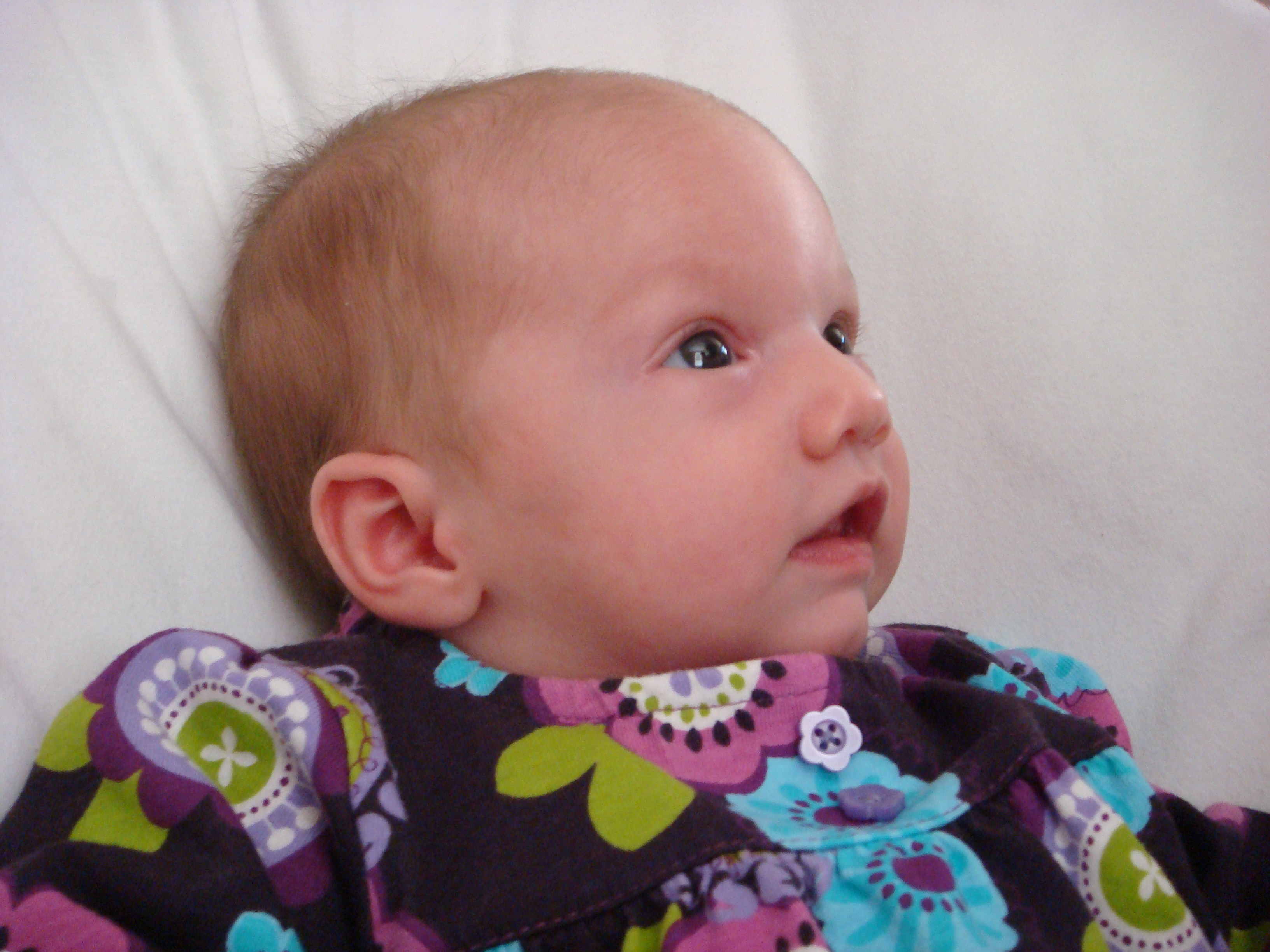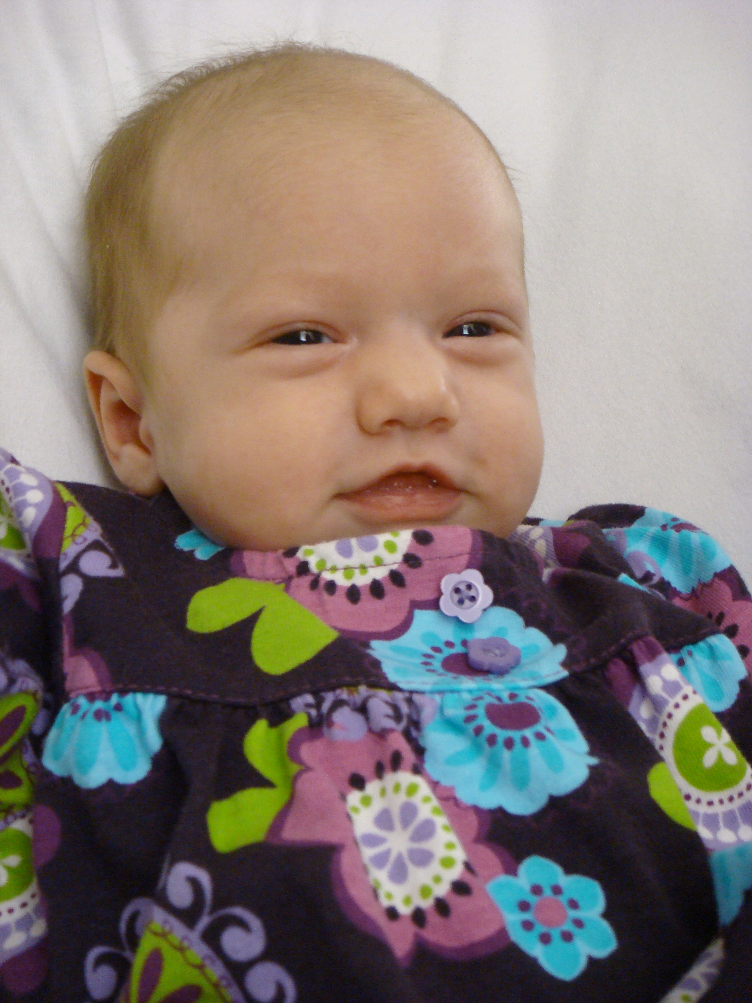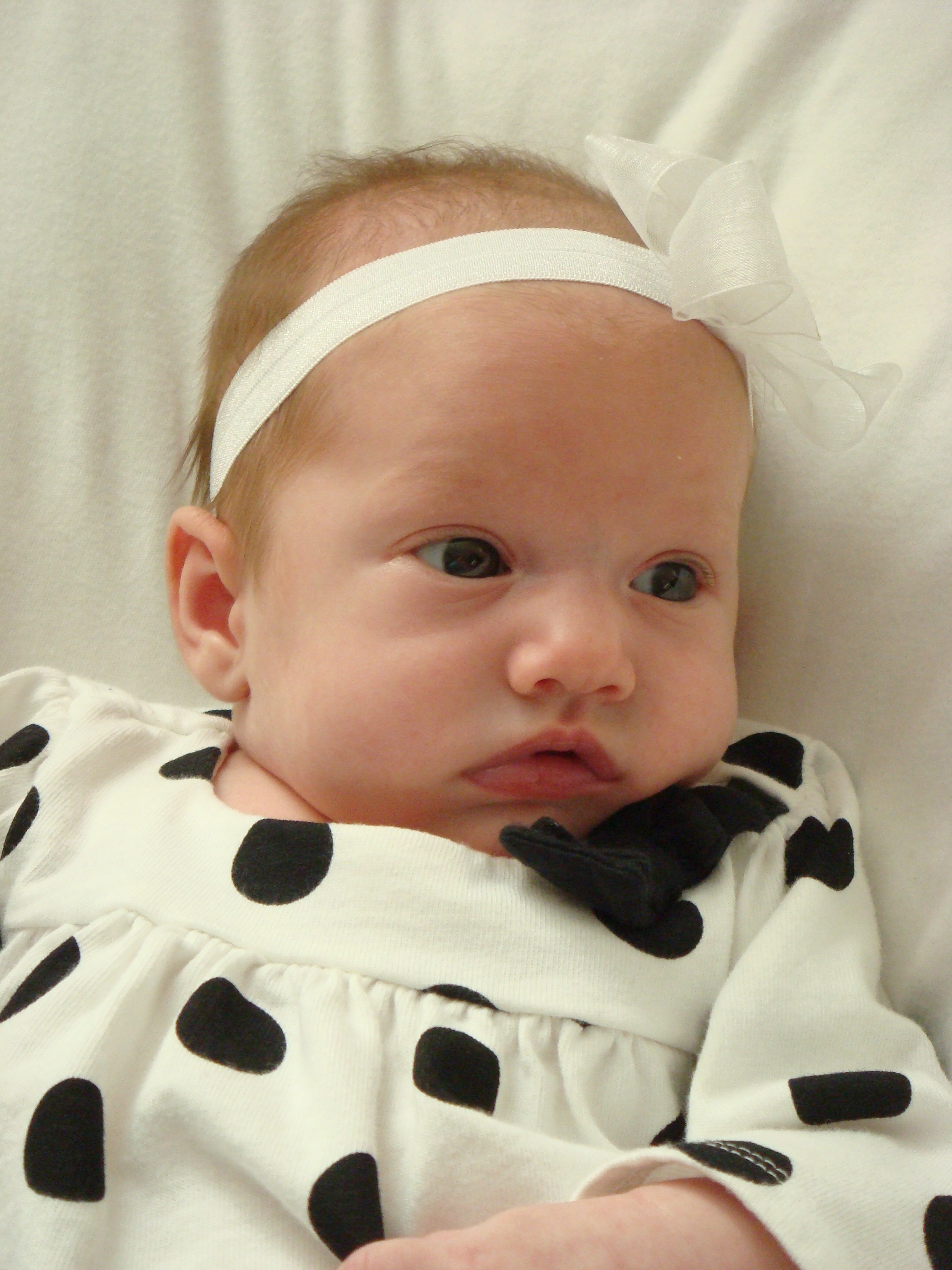 I was just looking at the first pictures you put up of her and it's amazing how quick and how much they change! She's already approaching her 2nd month mark - WOW! I can't remember what size that little dress was that I sent you but I can't wait to see it on her. Like I said before, I know it might be the wrong season for it, but maybe you could just put it on her and take a picture of her so I can see it - when it fits of course. I sure wish Haven didn't scream most of the time when I put clothes on her...