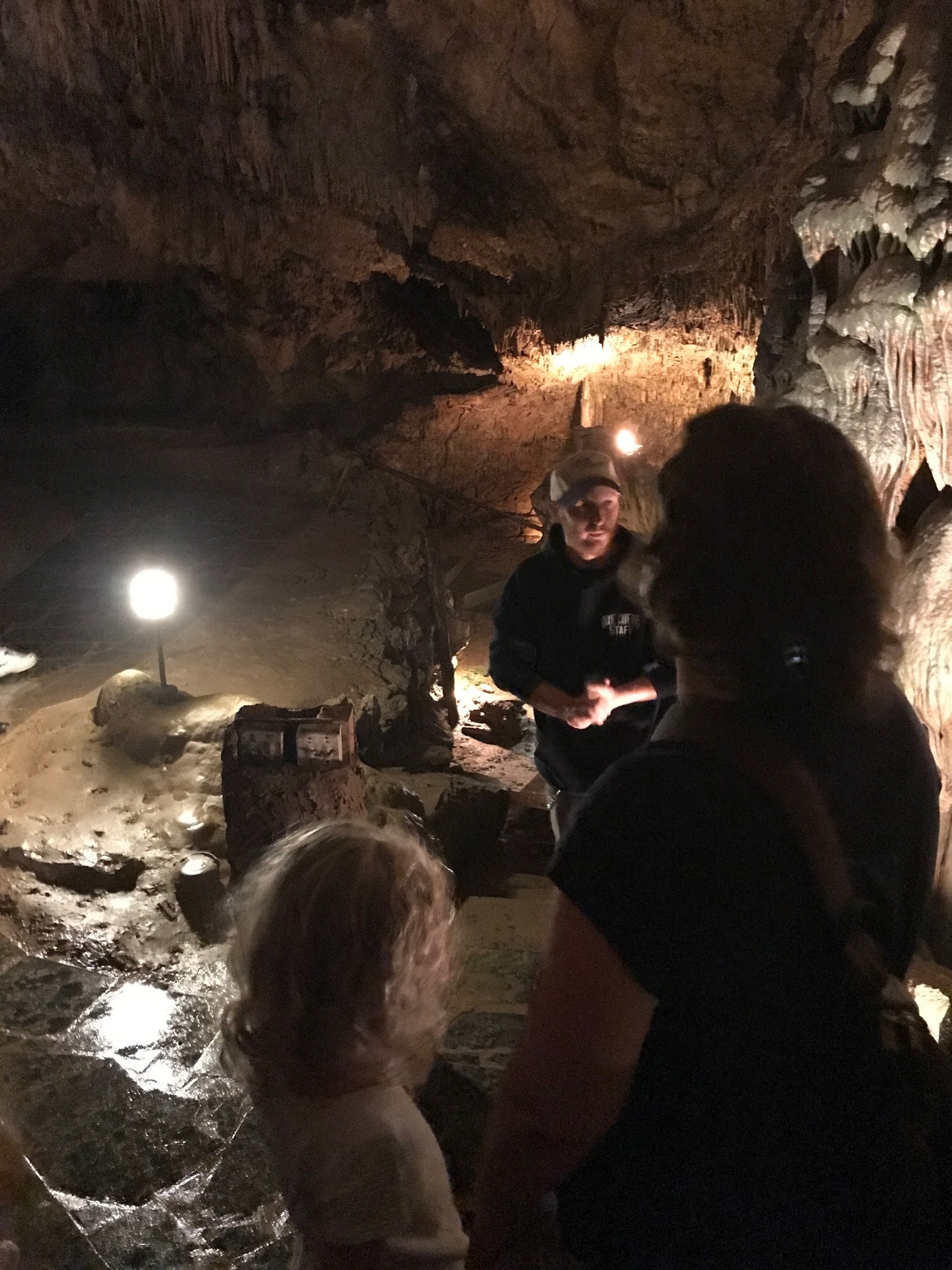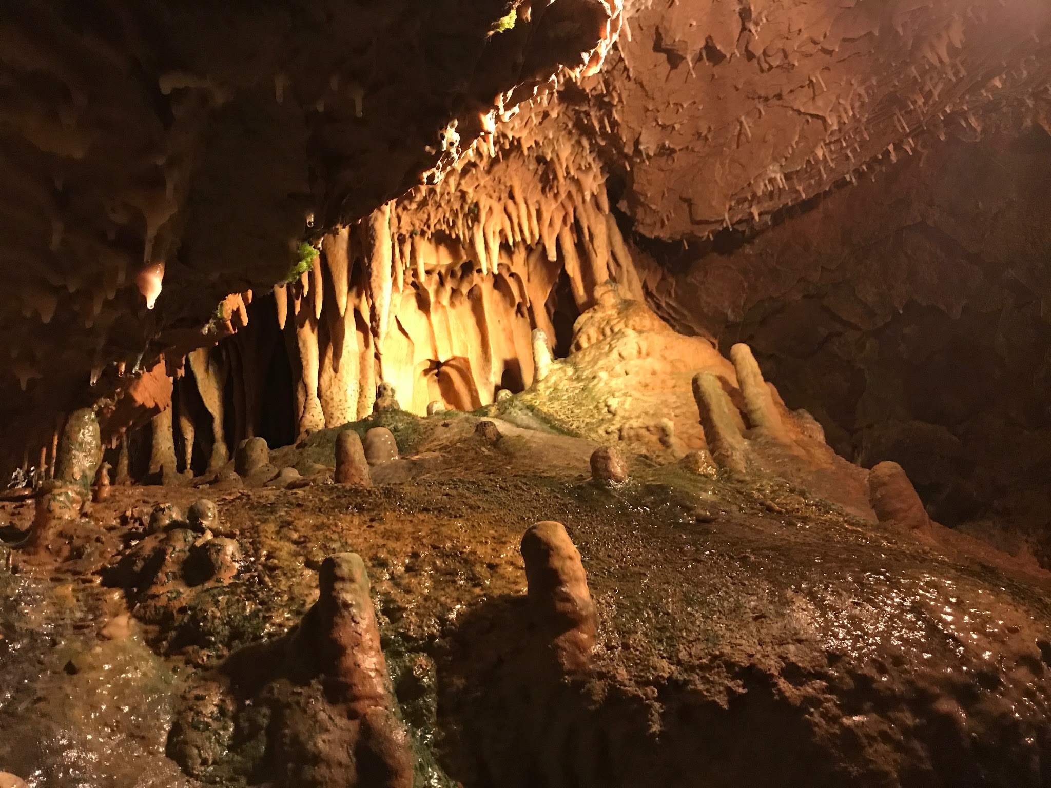 It was a small tour group, about 20 people, and the tour was not too long. The most interesting part to me was being able to see the original point of discovery of this cavern. You can look up and see daylight through a small opening and that was where a boy and his dogs found these caverns. Lots of water still dripping all throughout the caves.