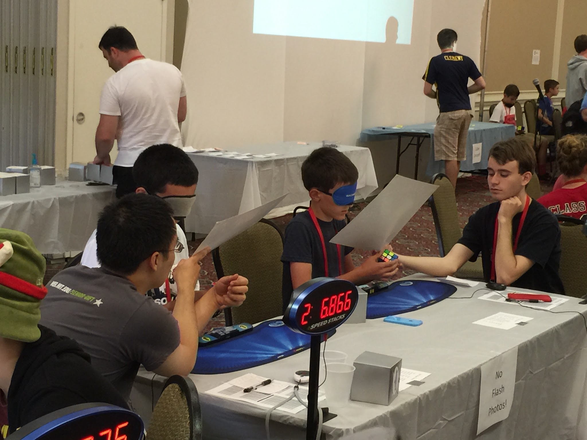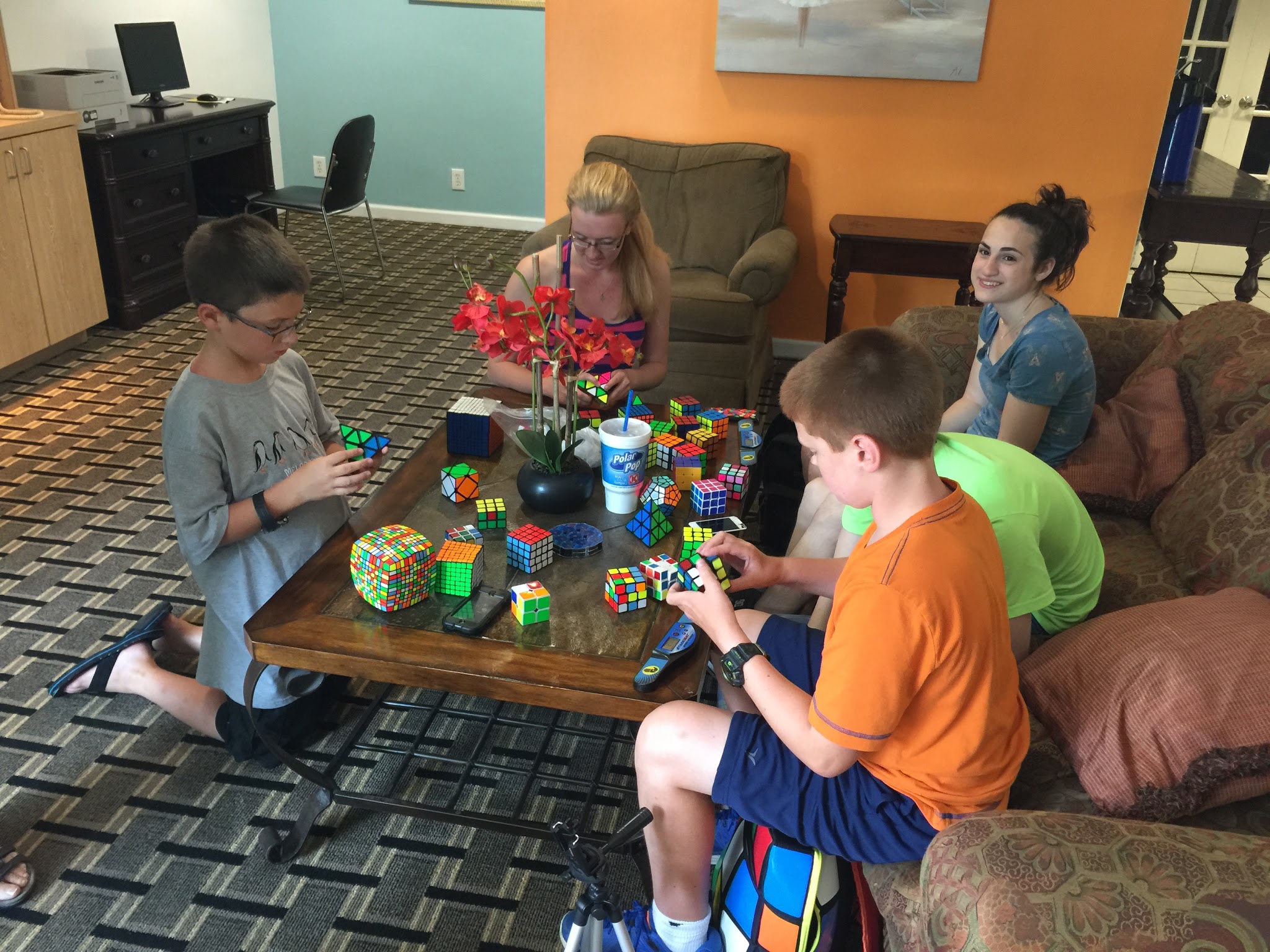 Carson has been interested in Rubiks cubes for about a year now, and has been practicing and getting really good at solving them. Keith found that the Rubiks Cube National Convention happened to be held this year in Hilton Head, so they made plans this summer to go, last minute.