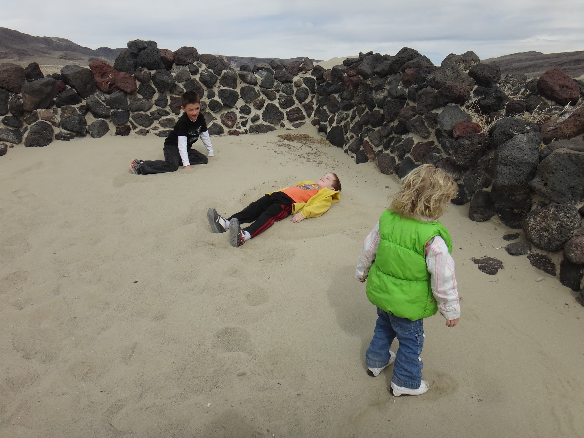 Tucker thought that making Sand Angels would be fun. Of course, the other kids followed suit.