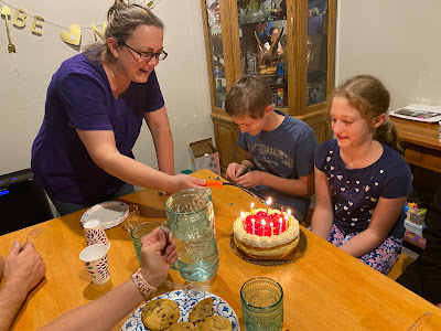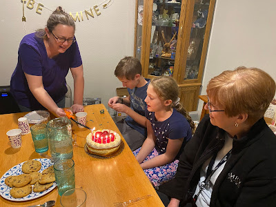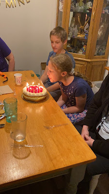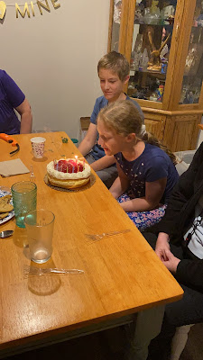 We had a family birthday dinner the Friday before Savannah's birthday - Nan, Teresa and Rogan came over to have Thai food and strawberry cake to help us celebrate.