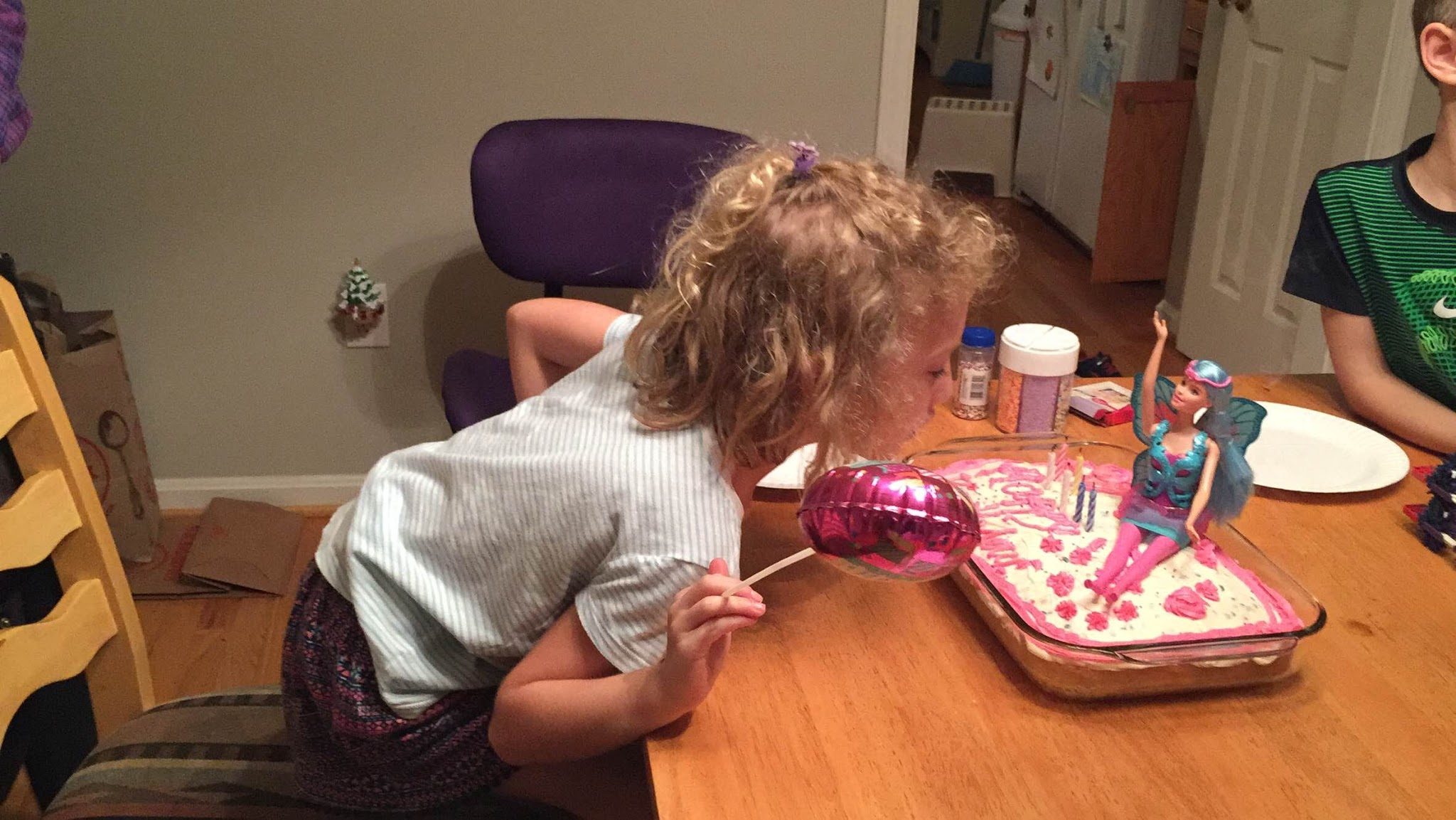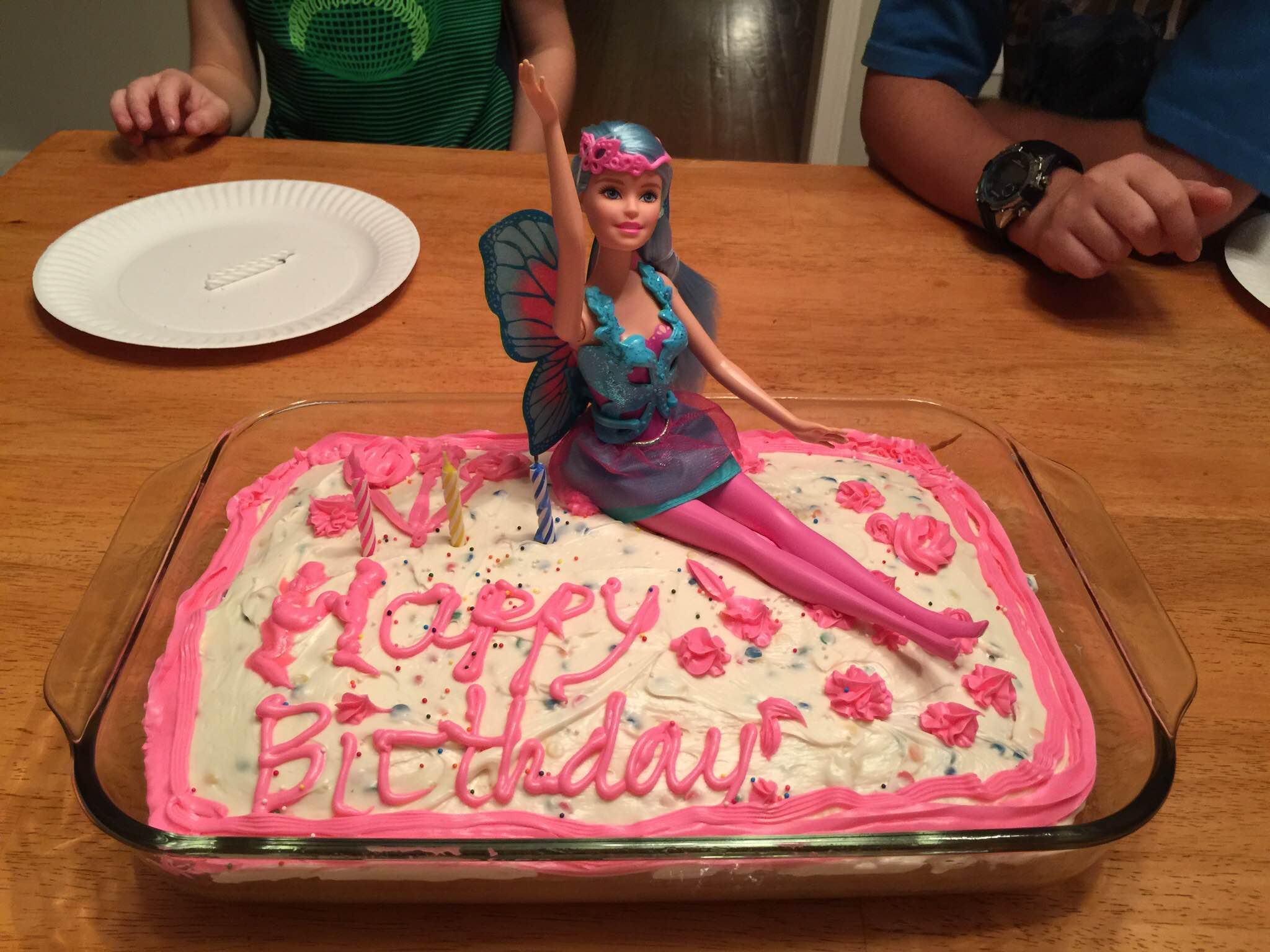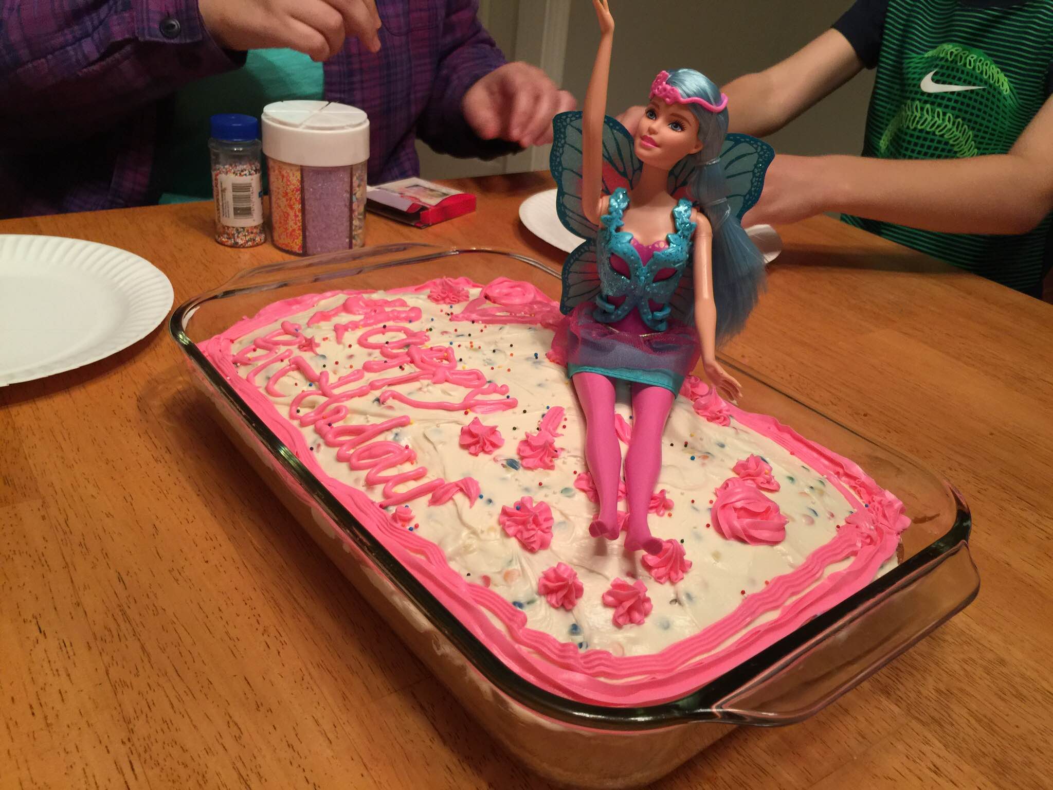 Savannah's favorite part was taking the barbie off the cake and seeing the frosting on her.