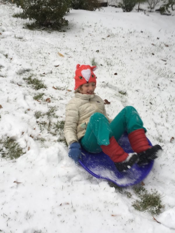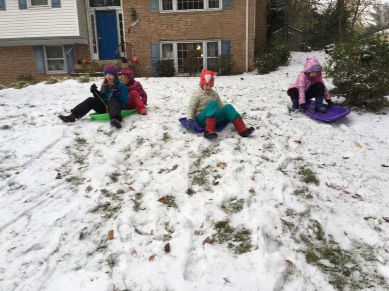 sledding at the Gray's house with Priscilla, Lydia and Leisel, and Abigail