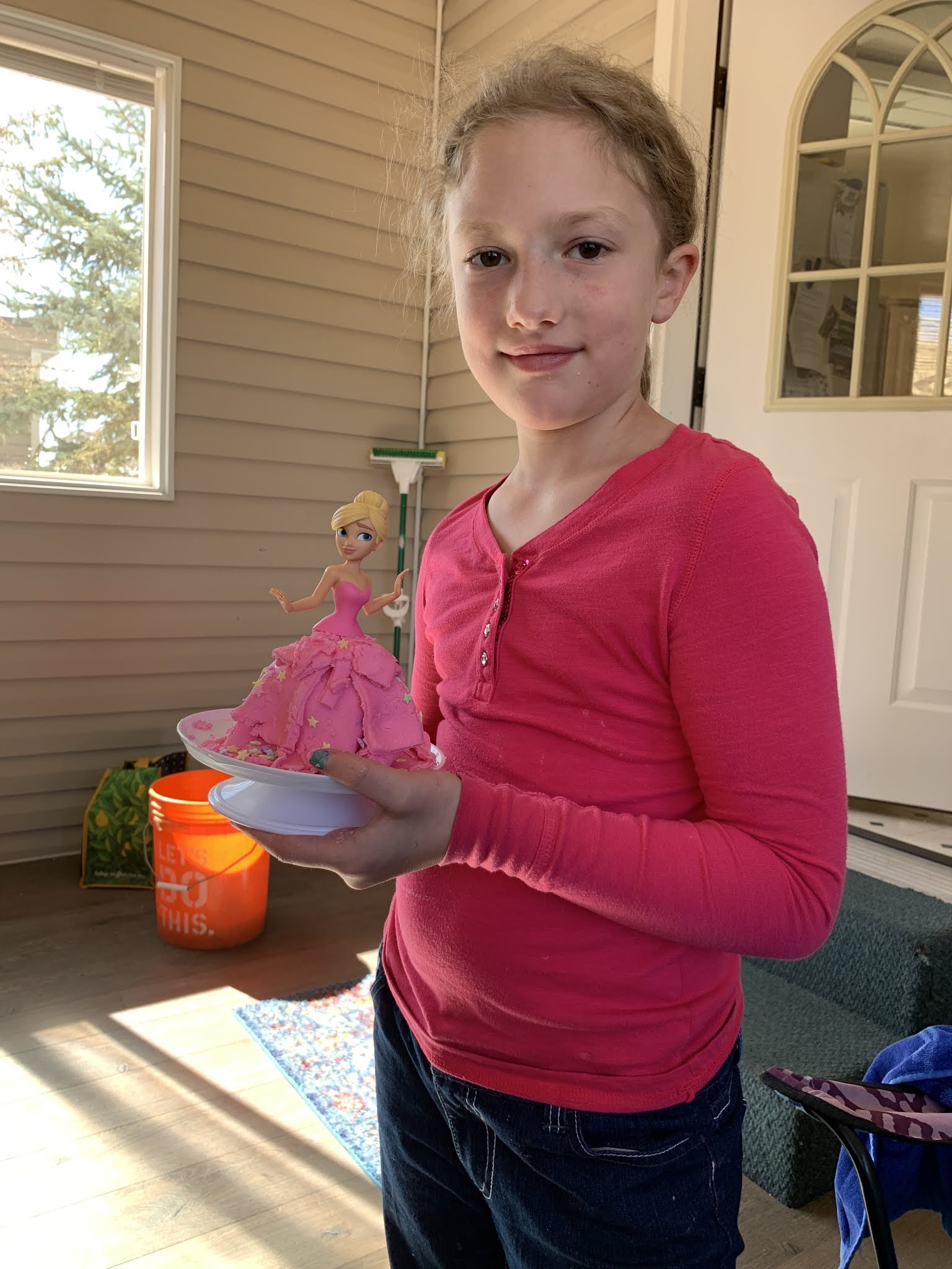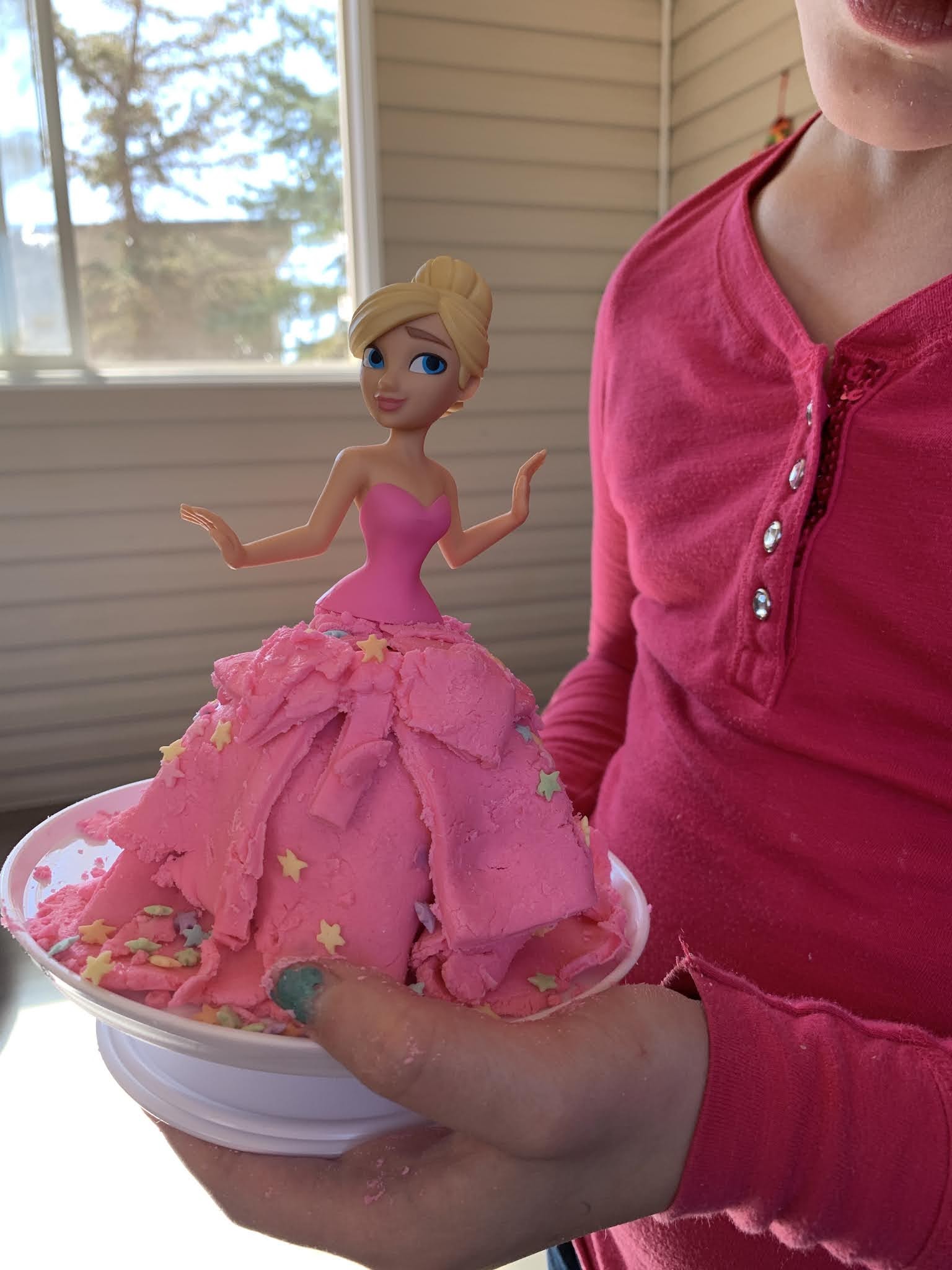 Savannah got a cake-making kit with some birthday money. She really enjoys baking, and this kit allows her to make up little cupcakes and a princess cake with a fondant skirt.