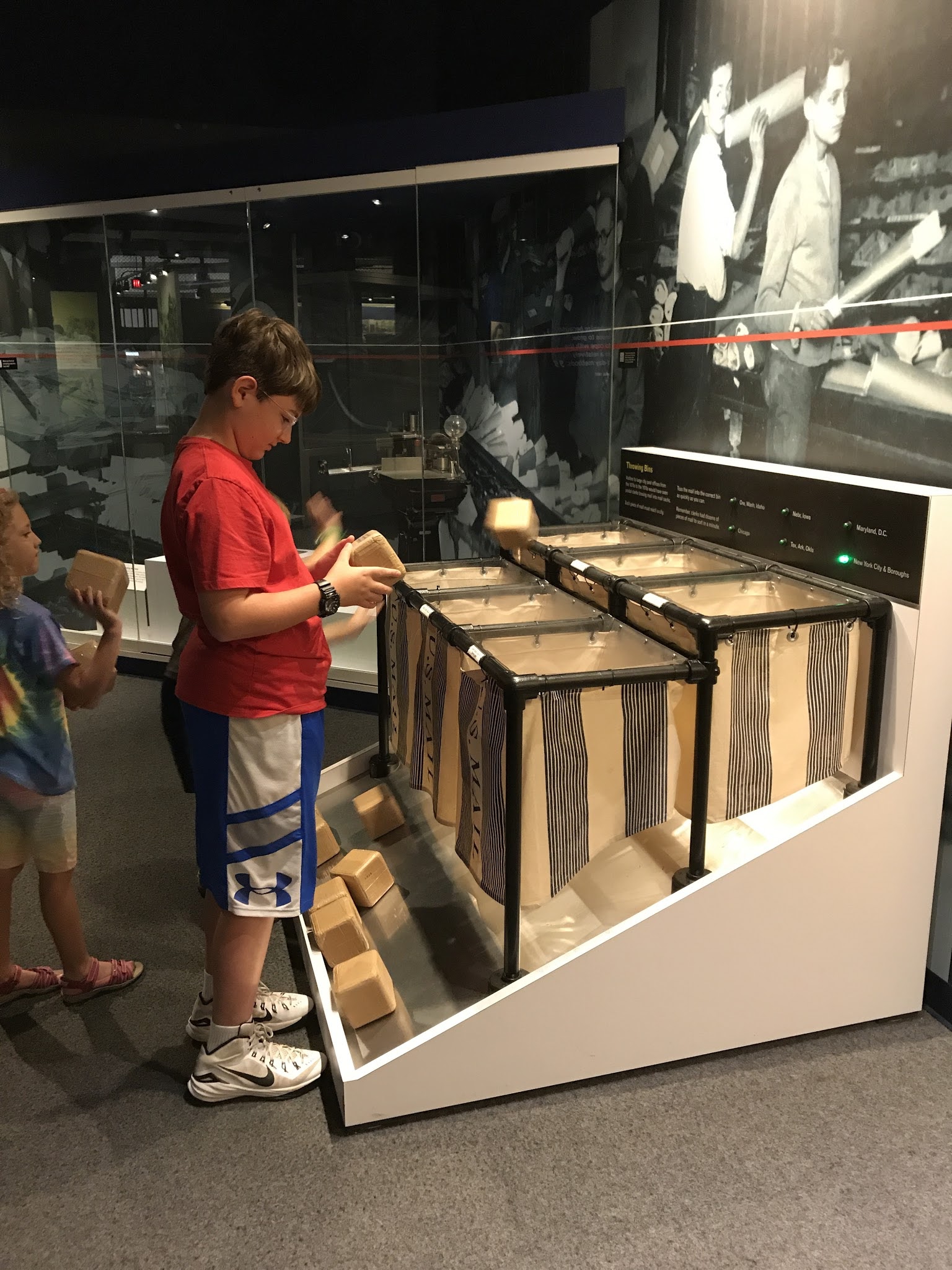 We went to the Smithsonian Postal Museum last week. It was in a building that used to be solely a post office, but recently they turned part of it into a museum.