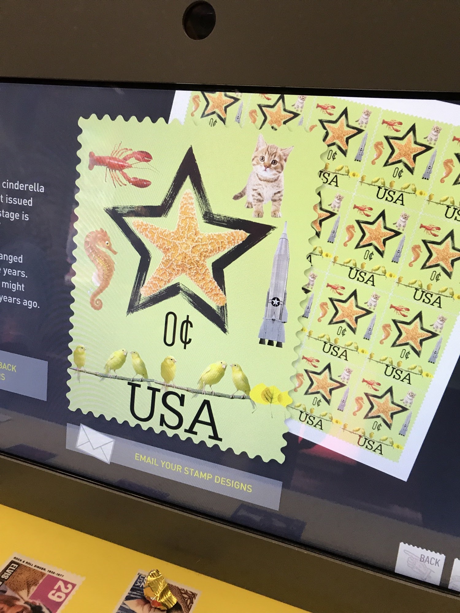 Stamp table; the museum put out a bunch of used stamps and let you pick out 6 to take home.