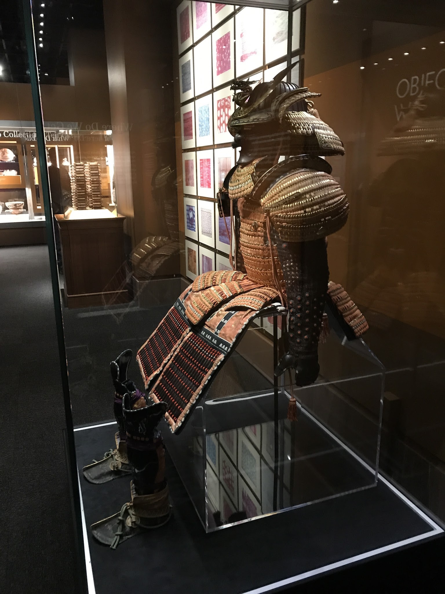 We went to a 'Special Collection' exhibit at the Museum of Natural History; they have lots of cool stuff and they can't display all of it I guess, so this exhibit allows them to display some of the cool things that are in their storage room. This is a Samurai uniform. It is hard to see the face mask; it has a furry black mustache.