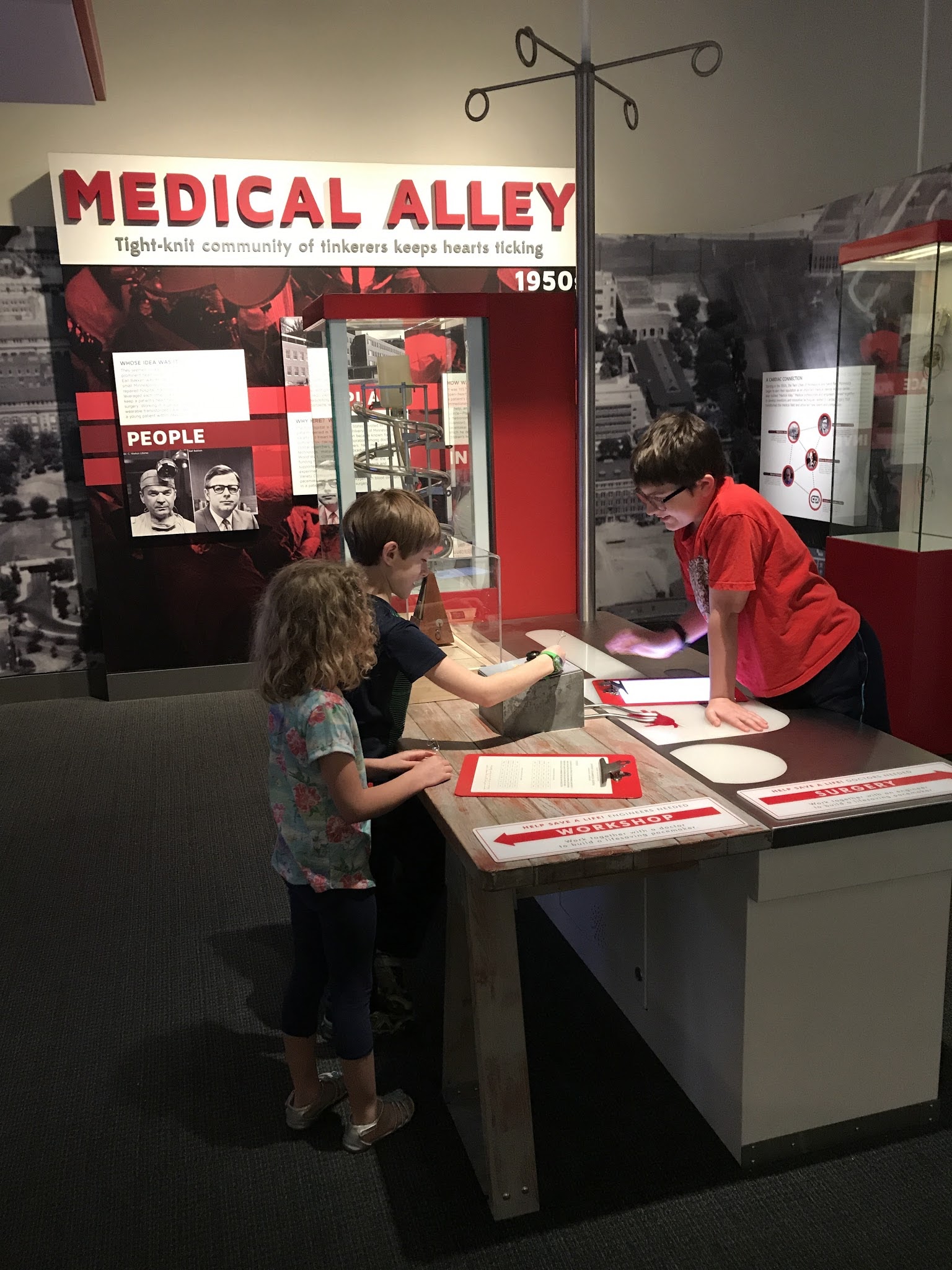 This exhibit has a heartbeat sound you have to regulate with the knobs Tucker is turning.