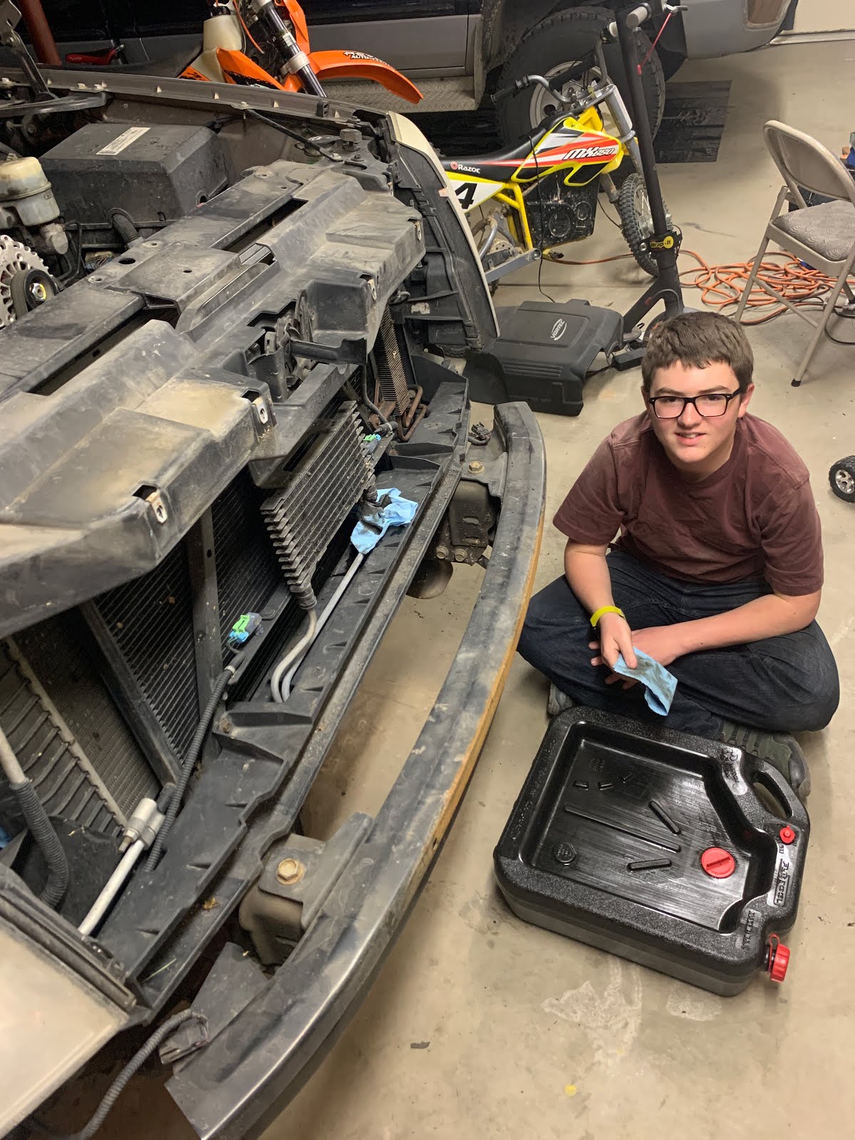 Recently, we changed the transmission fluid and filter, changed the engine oil, and replaced leaking transmission fluid cooler lines. Unfortunately, the only access to the lines is behind the plastic bumper / grill unit which surprisingly is only held on by a handful of small bolts.