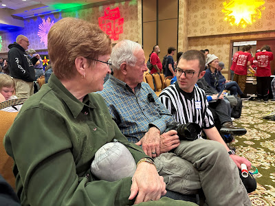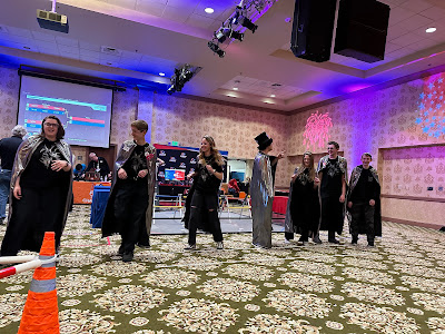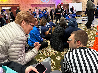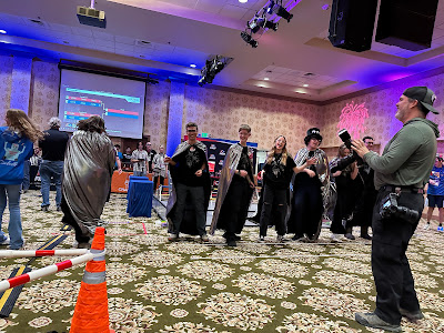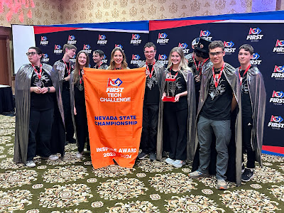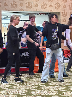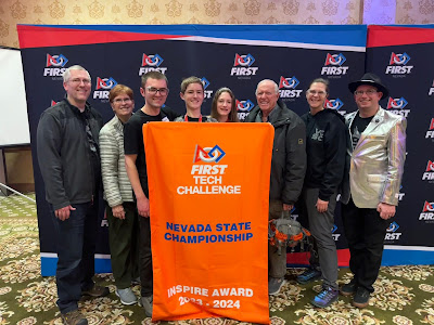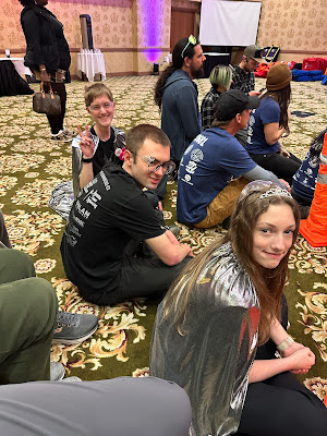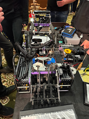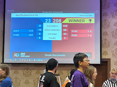 We've had a crazy blizzard blowing through Reno that started on Thursday night, so by Friday night it was snowing. The State robotics competition was supposed to be at McQueen High School, but because of snow days, a new venue had to be found. Someone in the organization was able to get a ballroom at the Circus Circus Casino in Reno. It was great to have the competition there - there was a lot of room for the fields and the pits and a food court upstairs.